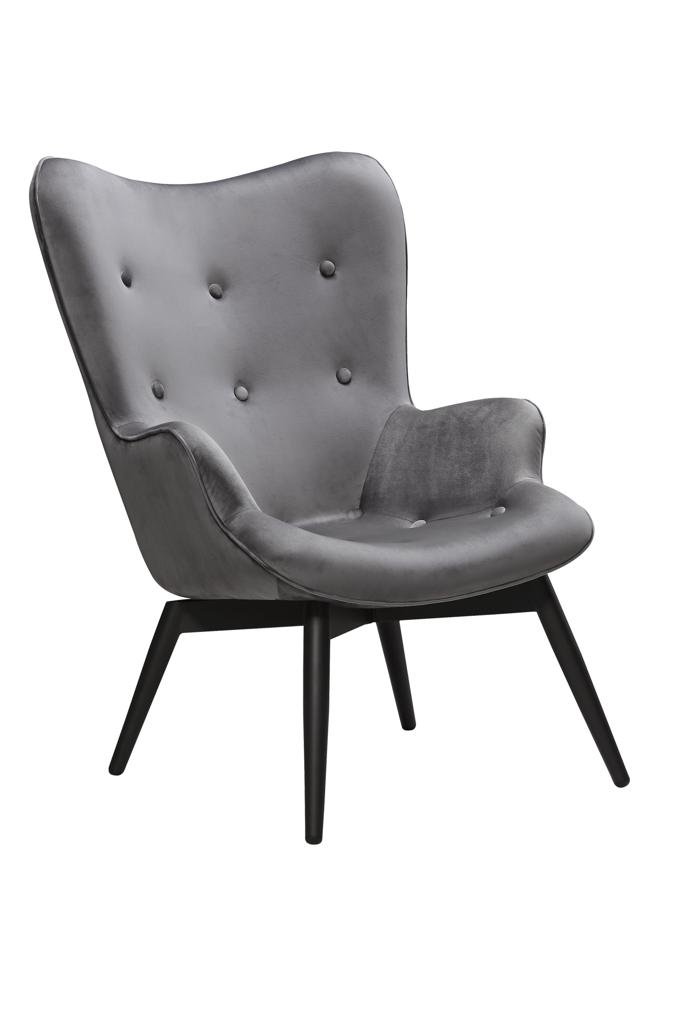 Échappez au quotidien et profitez d'une petite pause. Le fauteuil rembourré moderne de style scandinave se distingue par son revêtement en tissu velours et séduit par ses boutons décoratifs au niveau de l'assise et du dossier. Le piètement à 4 pieds en métal finition époxy ton noir garantit une excellente stabilité tout en offrant un superbe contraste avec le revêtement du fauteuil. Grâce au rembourrage de l'assise et du dossier et à la forme stylée de ce fauteuil, vous profiterez d'un confort d'assise haut de gamme. Sa forme arrondie lui donne un look tout en douceur. Le fauteuil peut être utilisé dans le salon pour se détendre ou dans une salle d'attente. Quel que soit l'endroit où il sera placé, ce fauteuil attirera tous les regards.