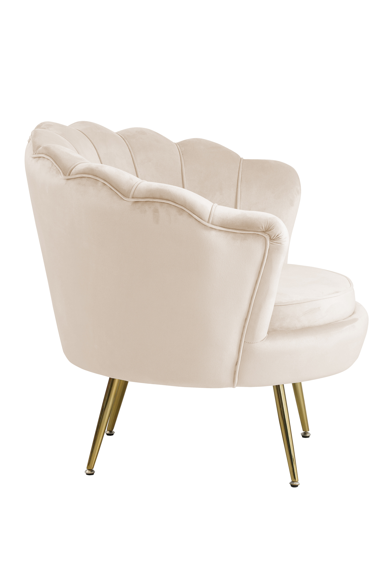Échappez au quotidien et profitez d'une petite pause. Le fauteuil moderne dans un joli design coquillage séduit par son revêtement en velours et par son assise et son dossier arrondis. Le piètement à 4 pieds en métal ton doré garantit une excellente stabilité tout en offrant un superbe contraste avec le revêtement du fauteuil. Grâce au rembourrage de l'assise et du dossier, au coussin d'assise surélevé et à la forme stylée de ce fauteuil, vous profiterez d'un confort d'assise haut de gamme. Sa forme arrondie lui donne un look tout en douceur. Le fauteuil peut être utilisé dans le salon pour se détendre ou dans une salle d'attente. Quel que soit l'endroit où il sera placé, ce fauteuil attirera tous les regards.