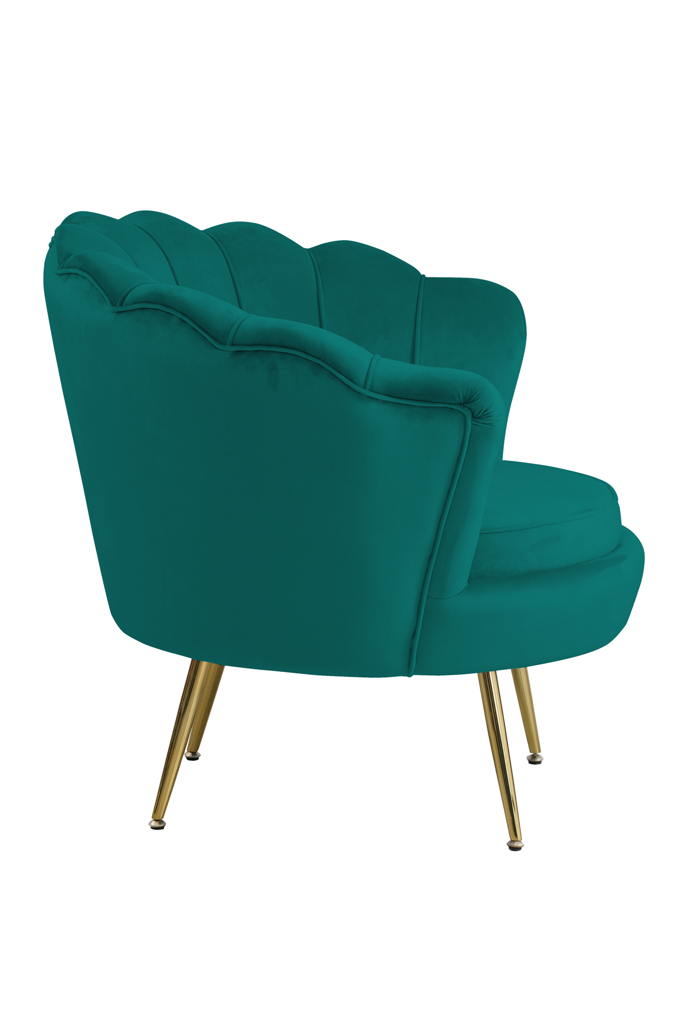 Échappez au quotidien et profitez d'une petite pause. Le fauteuil moderne dans un joli design coquillage séduit par son revêtement en velours et par son assise et son dossier arrondis. Le piètement à 4 pieds en métal ton doré garantit une excellente stabilité tout en offrant un superbe contraste avec le revêtement du fauteuil. Grâce au rembourrage de l'assise et du dossier, au coussin d'assise surélevé et à la forme stylée de ce fauteuil, vous profiterez d'un confort d'assise haut de gamme. Sa forme arrondie lui donne un look tout en douceur. Le fauteuil peut être utilisé dans le salon pour se détendre ou dans une salle d'attente. Quel que soit l'endroit où il sera placé, ce fauteuil attirera tous les regards.