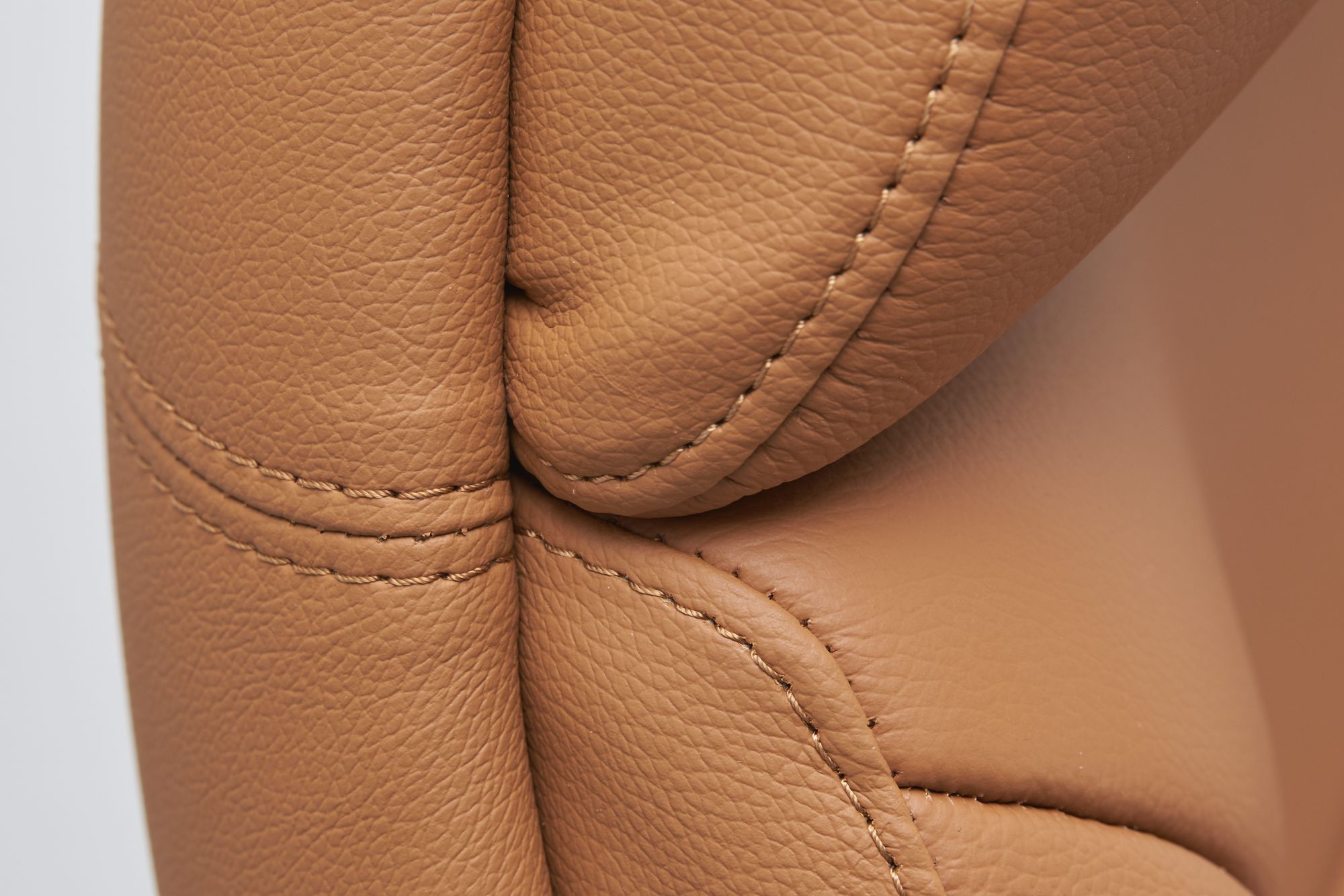 Revêtement coque assise (intérieur): 100% cuir véritable ton caramel