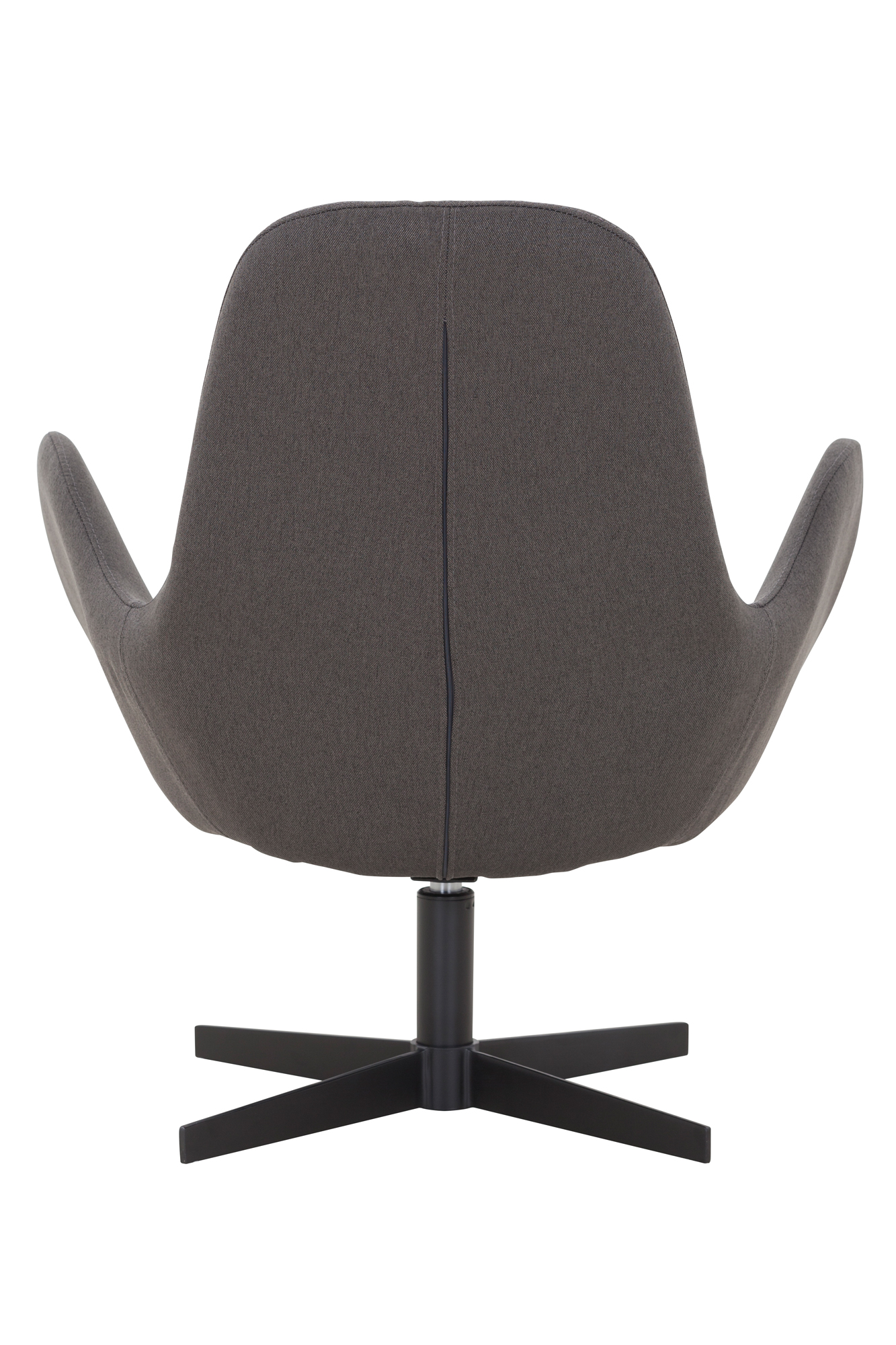 Ce fauteuil rembourré tendance se caractérise par son revêtement en tissu gris foncé. Le piètement en métal finition époxy ton noir garantit une excellente stabilité tout en offrant un superbe contraste avec le revêtement du fauteuil. La fonction rotation est le véritable point fort de ce fauteuil à accoudoirs. La forme stylée du fauteuil relax et le coussin d'assise ultra épais garantissent un confort d'assise agréable et haut de gamme. Voici donc votre nouvel endroit préféré ! Le fauteuil rembourré peut être utilisé dans le salon comme fauteuil TV ou dans un bar comme fauteuil de type lounge. Mais ce meuble attirera également aussi tous les regards une fois placé librement dans la pièce en guise de fauteuil solo.