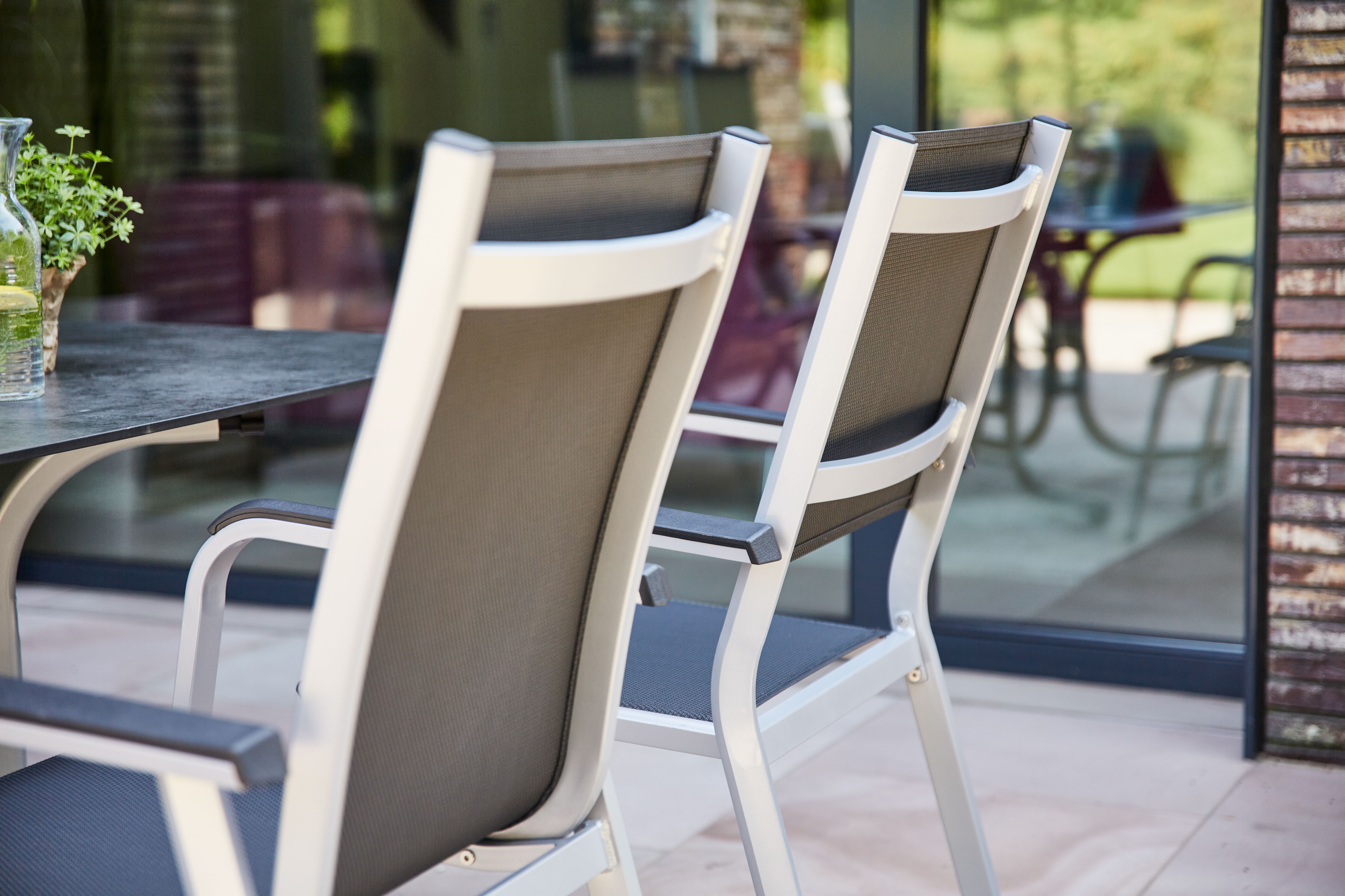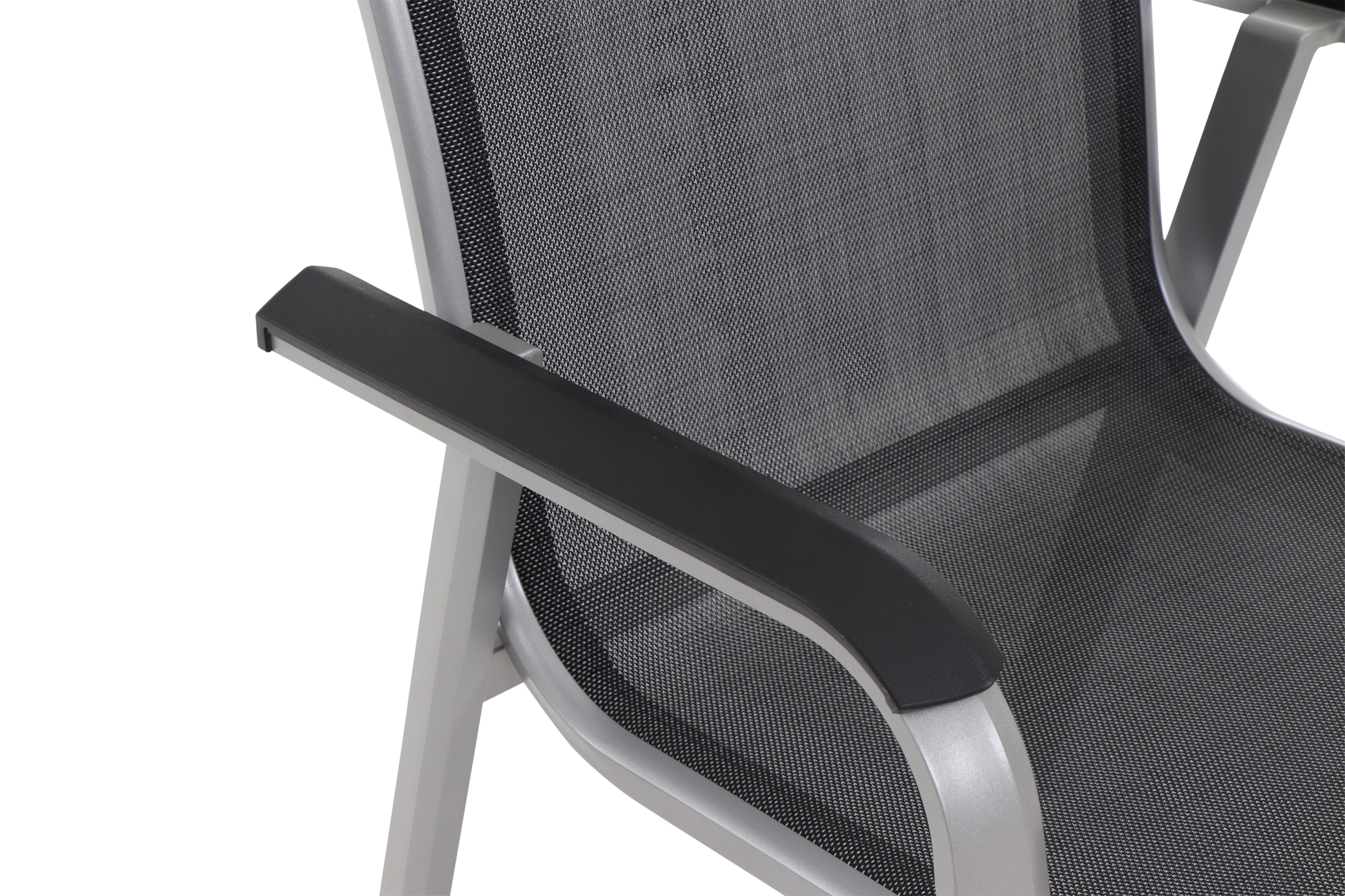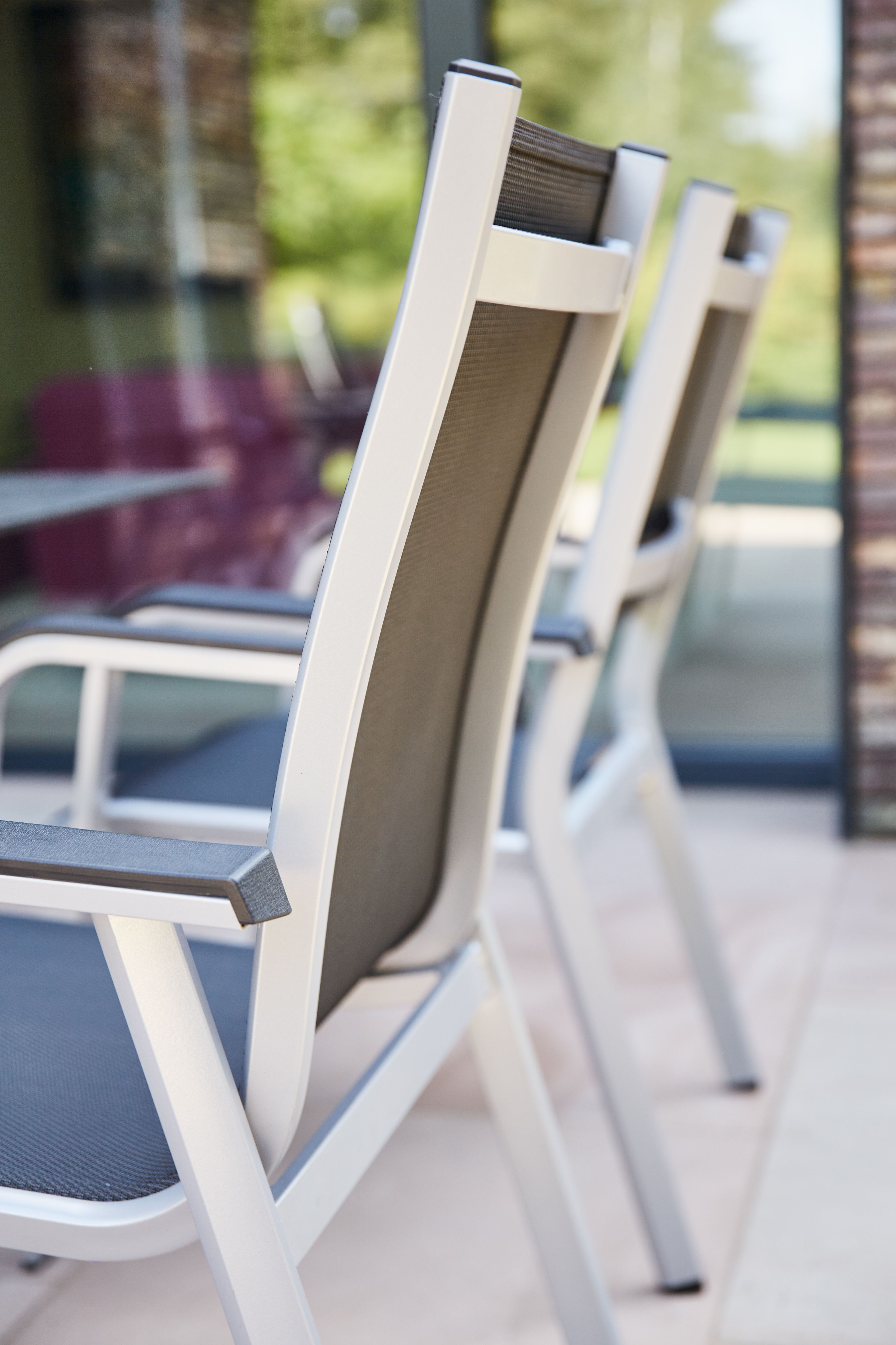 Assise et dossier : tissu textile Ranotex résistant aux intempéries et à la lumière ton gris en fibres de polyester revêtues de PVC