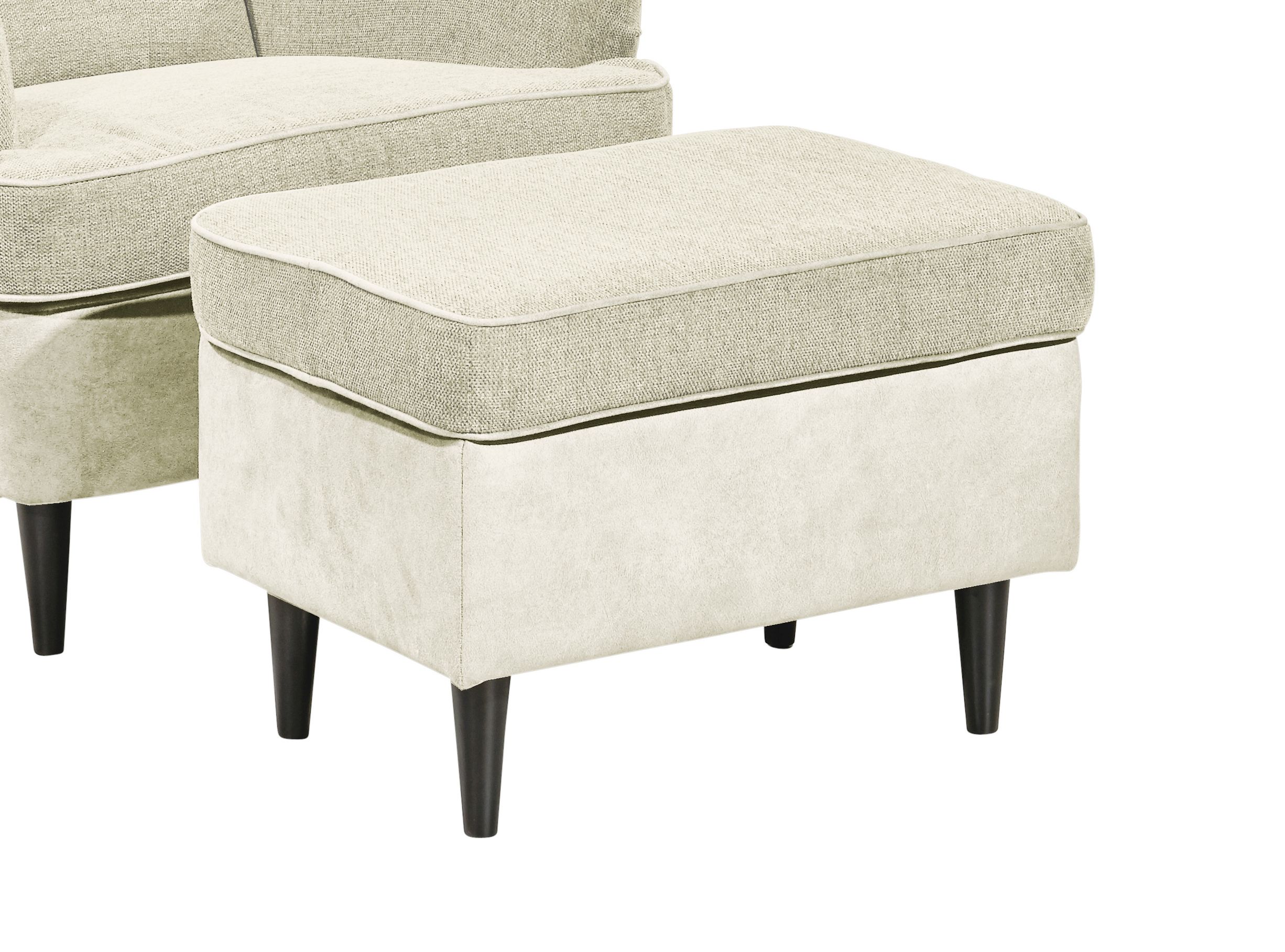 Revêtement : tissu Salvador ton crème 100 % polyester ; assise et dossier en tissu Brego 31 ton crème 100 % polyester
