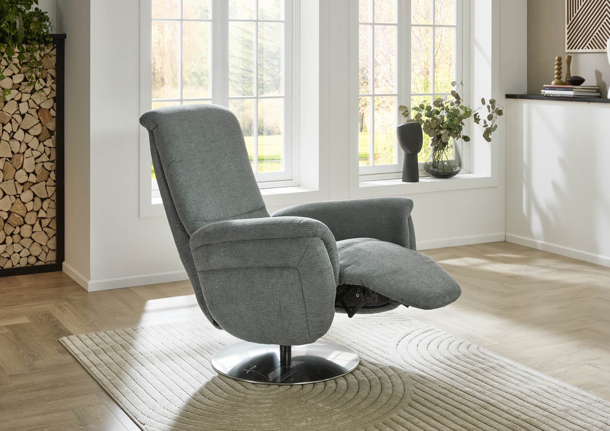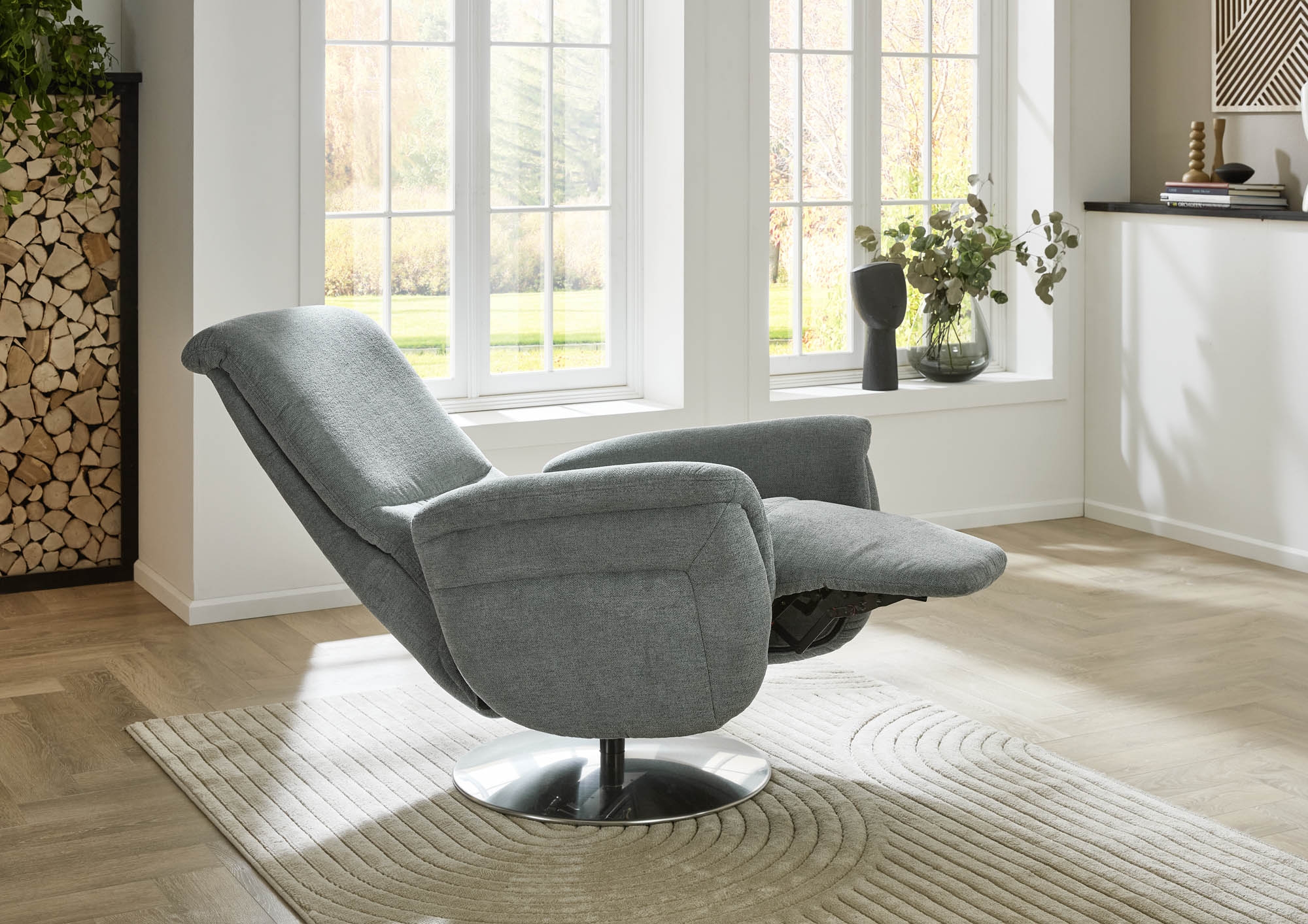 Avec fonction relax confort : réglage du dossier sans à-coup par vérin à gaz – indépendamment du repose-pied avec levier intérieur pour un réglage sans à-coup jusqu’au verrouillage en toute sécurité. Manipulez simplement le levier à l’intérieur de l’accoudoir et réglez le fauteuil, grâce à une légère pression corporelle, dans la position souhaitée.