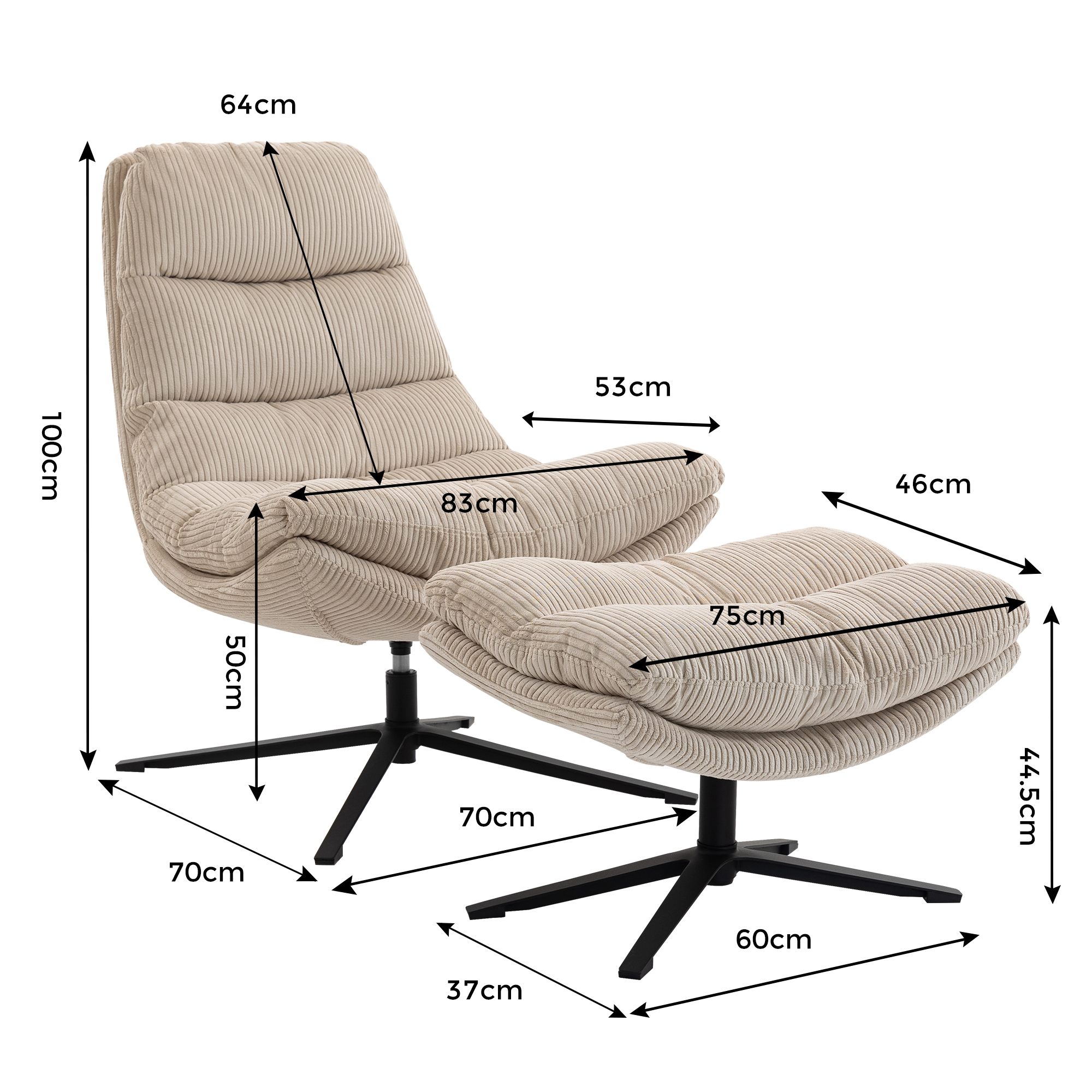 | Fauteuil relax avec repose-pieds | 83 | 100 | 112 |