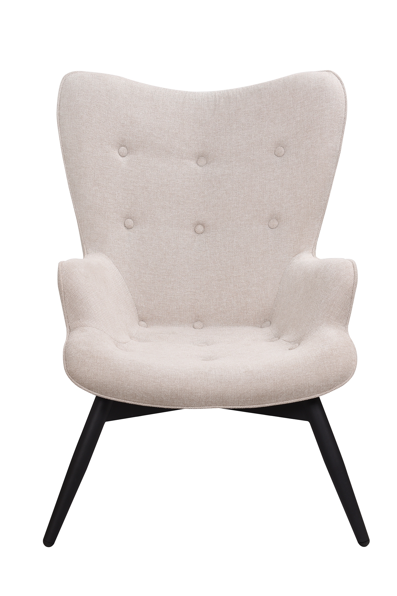 Échappez au quotidien et profitez d'une petite pause. Le fauteuil rembourré moderne de style scandinave se distingue par son revêtement en tissu chiné et séduit par ses boutons décoratifs sur l'assise et le dossier. Le piètement à 4 pieds en métal finition époxy ton noir garantit une excellente stabilité tout en offrant un superbe contraste avec le revêtement du fauteuil. Grâce au rembourrage de l'assise et du dossier et à la forme stylée de ce fauteuil, vous profiterez d'un confort d'assise de première classe. Sa forme arrondie lui donne un look tout en douceur. Le fauteuil peut être utilisé dans le salon pour se détendre ou dans une salle d'attente. Quel que soit l'endroit où il sera placé, ce fauteuil attirera tous les regards.