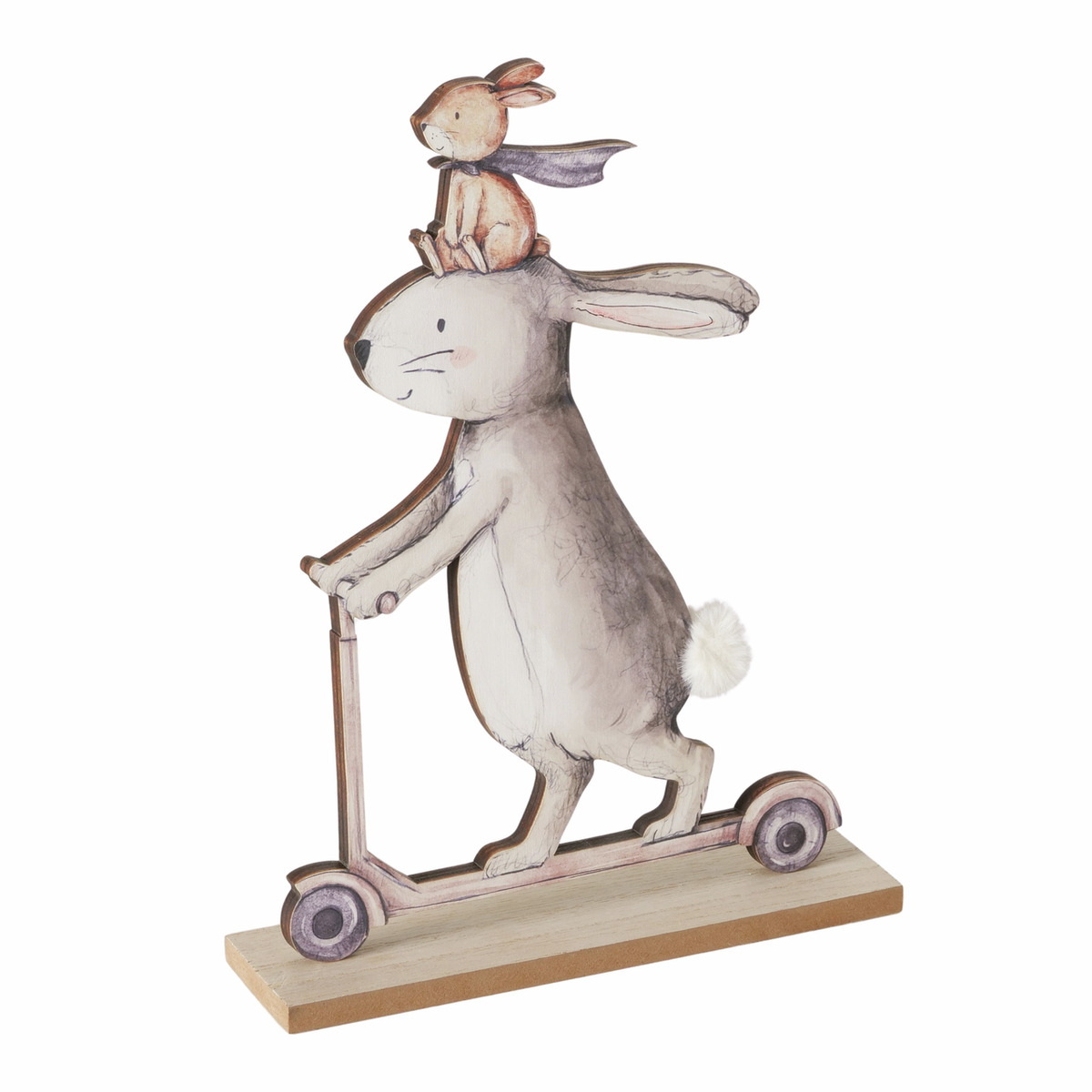 lapin sur trottinette avec lapereau ou lapin avec fleur et lapereau dans 2 modèles différents*