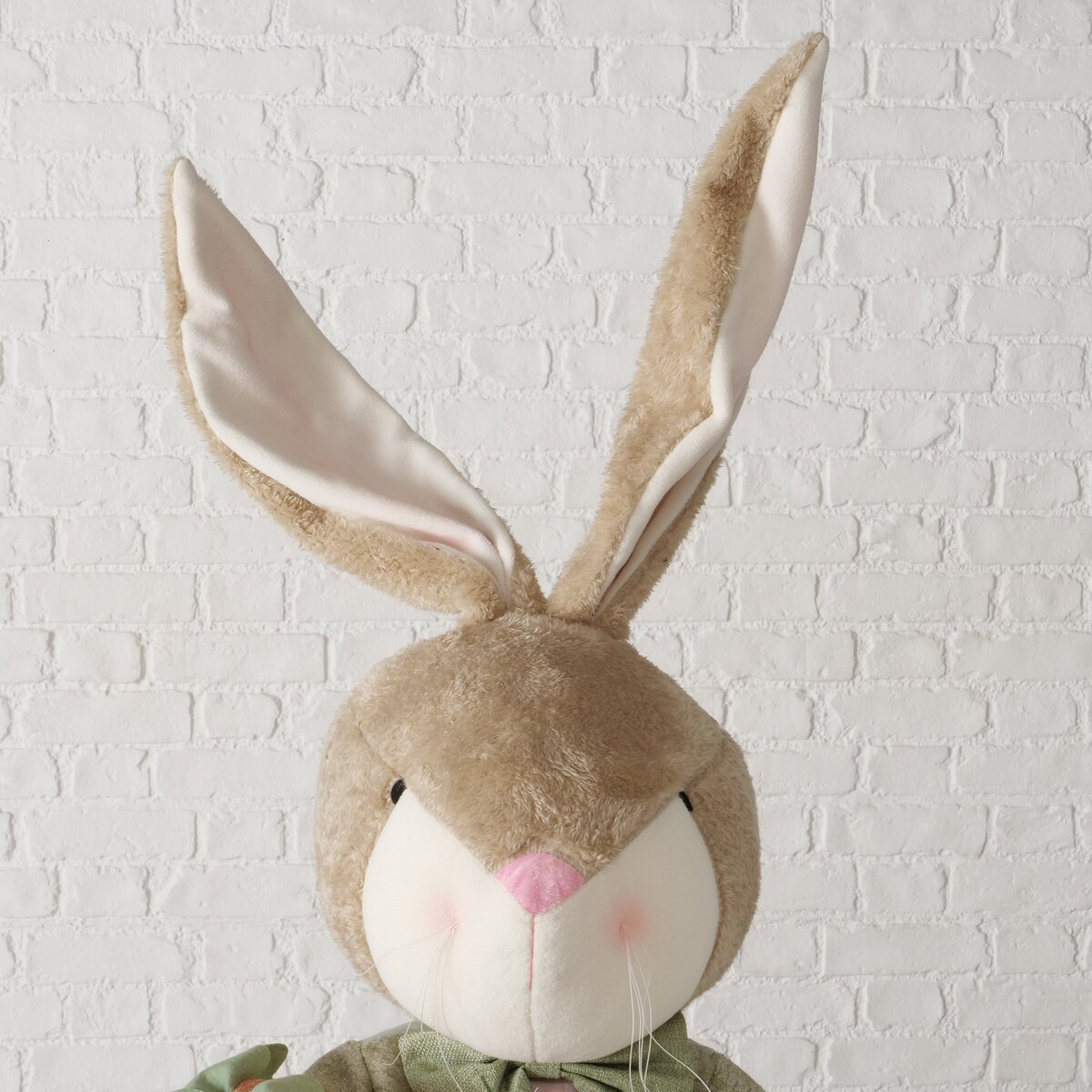 Figurine lièvre XXL assis sur un rebord avec carotte MIMI