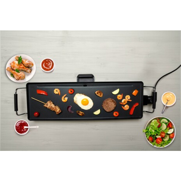 Pour d’excellents résultats de cuisson, nous recommandons d’utiliser un peu d’huile. Le bac de récupération amovible permet de garder votre table ou votre plan de travail propre et sans traces de graisse. De plus, le revêtement antiadhésif facilite le nettoyage après utilisation.