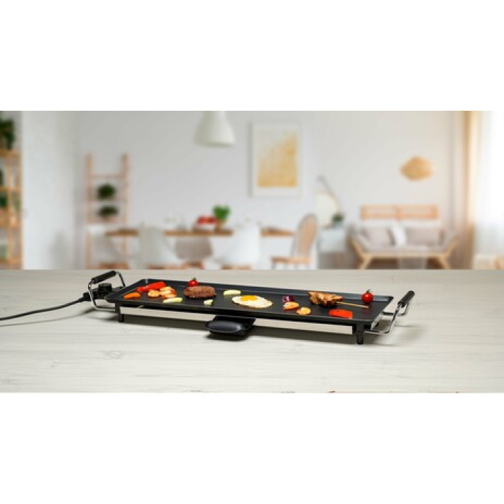 Le thermostat réglable de la plaque Teppanyaki Alpina est facile à utiliser et propose 5 niveaux de cuisson pour s’adapter à toutes vos envies. Les poignées anti-chaleur "cool-touch" situées de chaque côté garantissent une manipulation sécurisée sans risque de brûlure lors des déplacements du grill.
