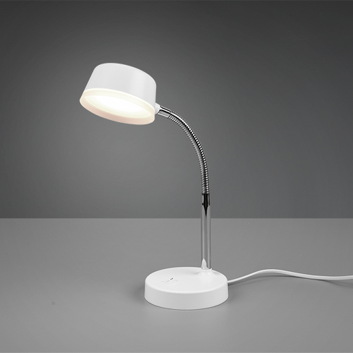La lampe de table KIKO est la source lumineuse idéale. La lampe à poser trouvera sa place sur un bureau ou une table, mais aussi sur un chevet à côté du lit, sur une commode ou un buffet à fin de créer la lumière d'ambiance parfaite. Le brave flexible permet d'orienter la lampe de façon idéale. L'interrupteur au niveau du pied permet d'allumer et d'éteindre la lampe facilement. Le design minimaliste et le coloris blanc garantissent une intégration parfaite dans les intérieurs existants. La lampe dispose, en outre, de la technologie LED qui se caractérise par une luminosité de qualité et une excellente efficacité énergétique. Ceci permet d'économiser 80 % des coûts énergétiques par rapport aux ampoules halogènes habituelles. De plus, les sources lumineuses LED ont une durée de vie accrue, produisent moins de chaleur et participent à la protection de l'environnement.