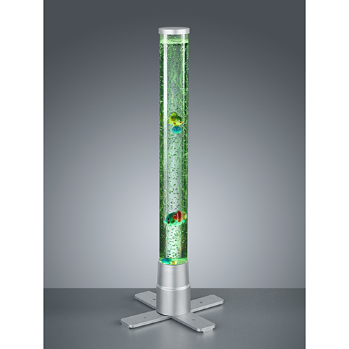 Les colonnes d'eau sont un grand classique parmi les lampes décoratives ! Mettez en lumière et en couleur votre salon, chambre à coucher, mais aussi la chambre d'enfant ou d'adolescent. La colonne d'eau MOTION est éclairée grâce à la technologie LED intégrée et produit, lorsqu'on l'allume, un courant qui met en mouvement les boules et poissons décoratifs. Le variateur de couleurs RVB permet en plus de créer des mises en scène lumineuses variées. Une fois éteinte, la lampe dispose d'un aspect sobre et peut se combiner de multiples façons grâce au pied ton titane et à la colonne transparente. La lampe dispose, en outre, de la technologie LED qui se caractérise par une luminosité de qualité et une excellente efficacité énergétique. Ceci permet d'économiser 80 % des coûts énergétiques par rapport aux ampoules halogènes habituelles. De plus, les sources lumineuses LED ont une durée de vie accrue, produisent moins de chaleur et participent à la protection l'environnement.