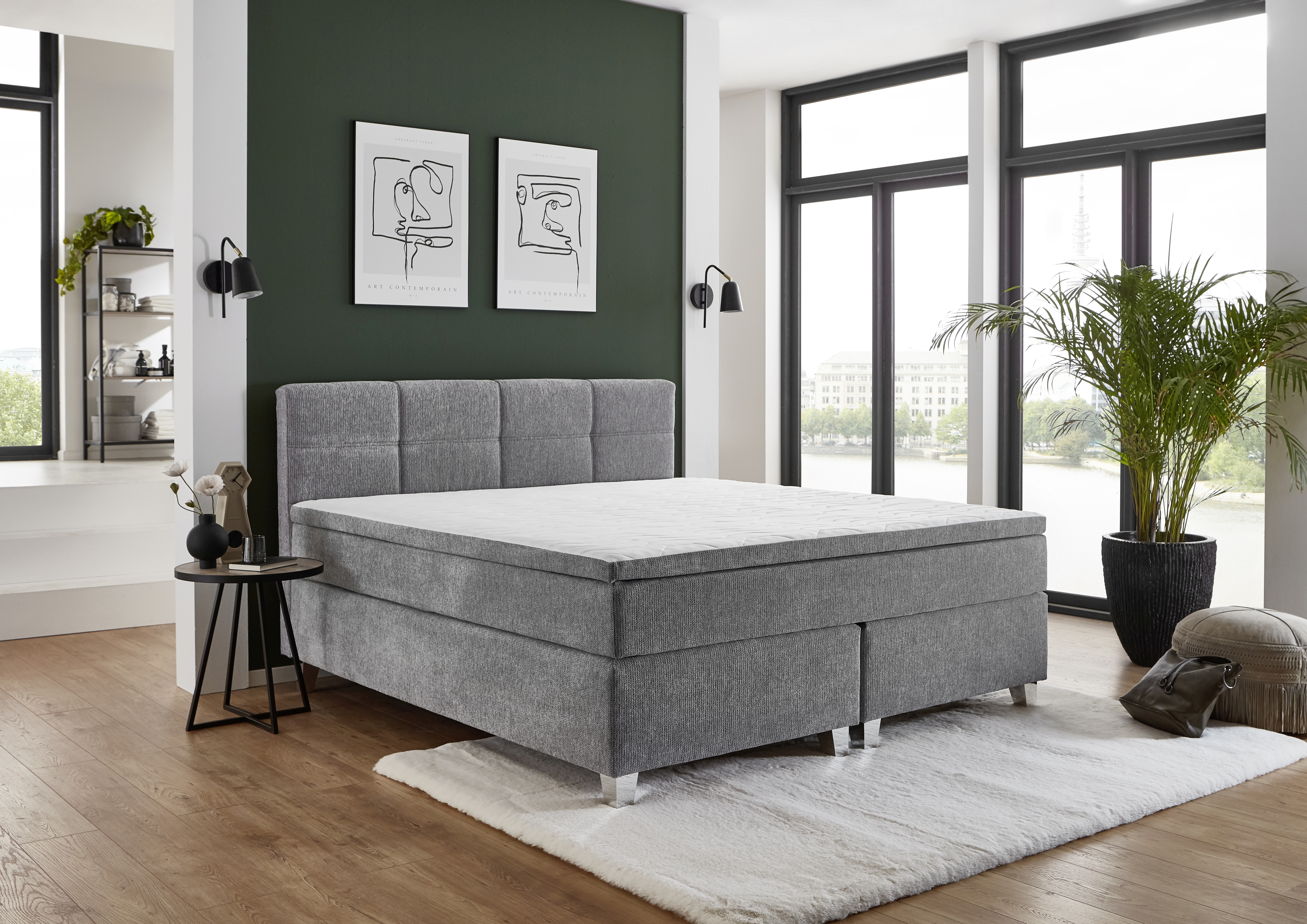 Ce lit boxspring en tissu argente 50530-720 allie un equipement bien pense a une fabrication solide et un confort de couchage agreable. La base se compose de deux sommiers boxspring avec ressorts Bonell et cadre en mousse confortable et stable. Le matelas a ressorts ensaches 7 zones offre un soutien ponctuel, tandis que le surmatelas integre en mousse PU confort, solidement cousu et reversible, apporte un confort supplementaire. La tete de lit et les cotes sont recouverts de tissu d'ameublement, l'arriere de non-tisse. Le lit offre une surface de couchage continue sans espace genant. Ideal pour les acheteurs soucieux de leur budget qui accordent de l'importance au confort, a la fonctionnalite et a un bon rapport qualite-prix - avec la garantie de prix MEGA.