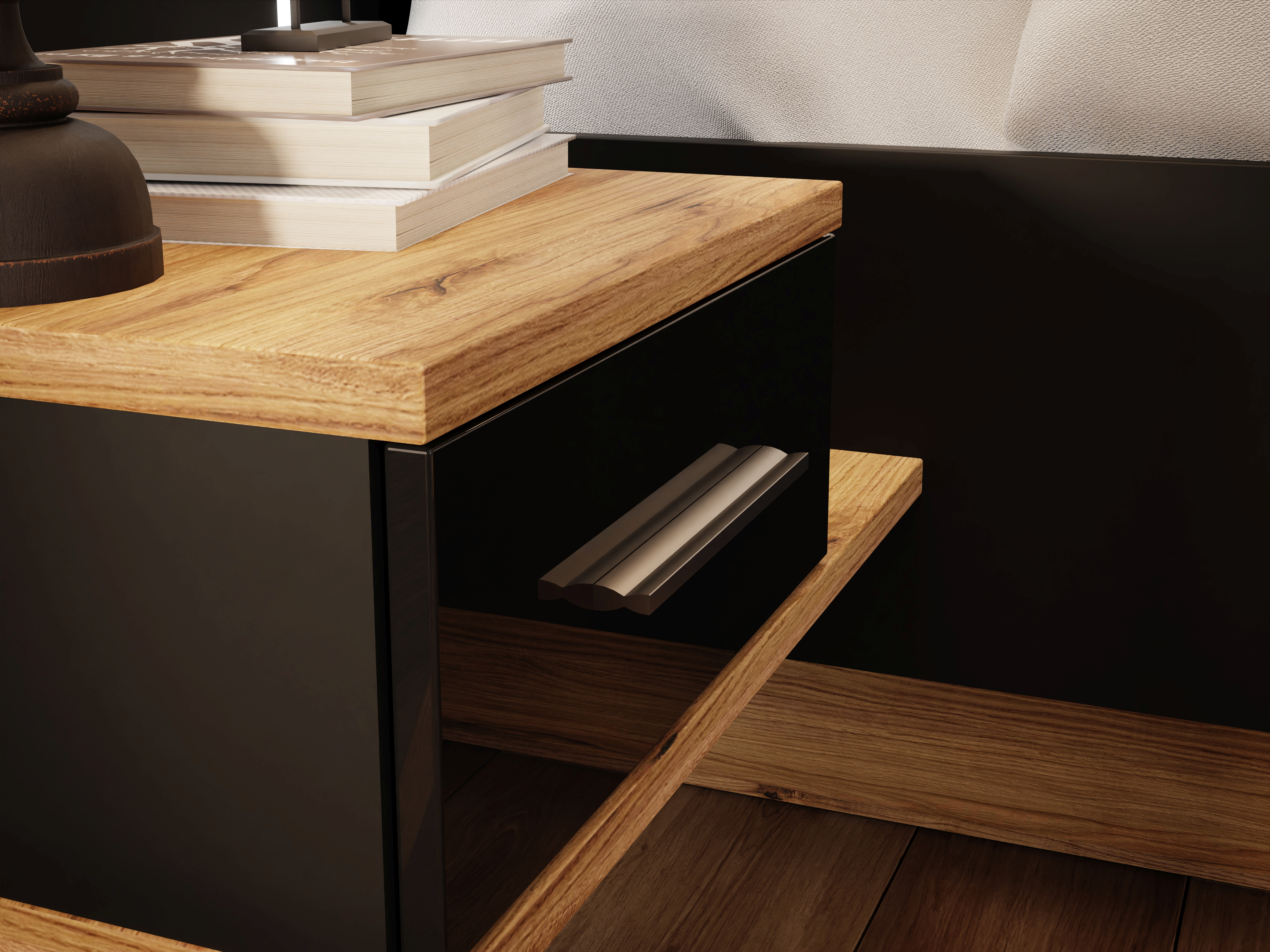 ton noir ultra brillant et ton noir avec décor chêne Catania