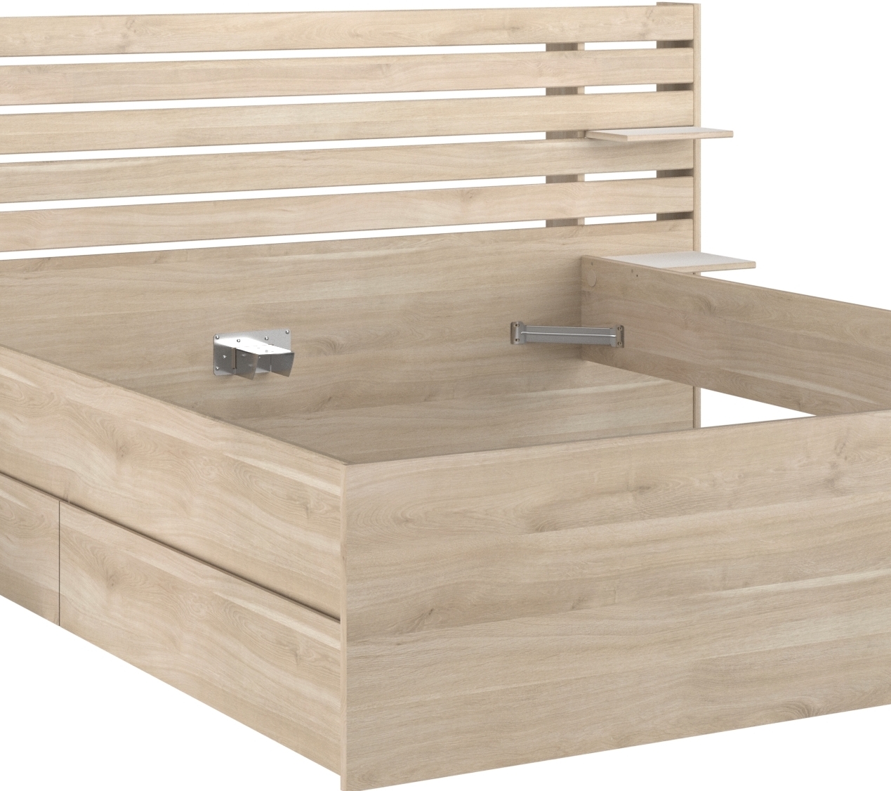 2 tablettes fixes au niveau de la surface de couchage (en guise de chevets)