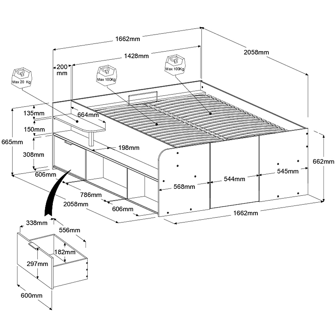 Equipement lits: | Tiroirs, incl. sommier à lattes |