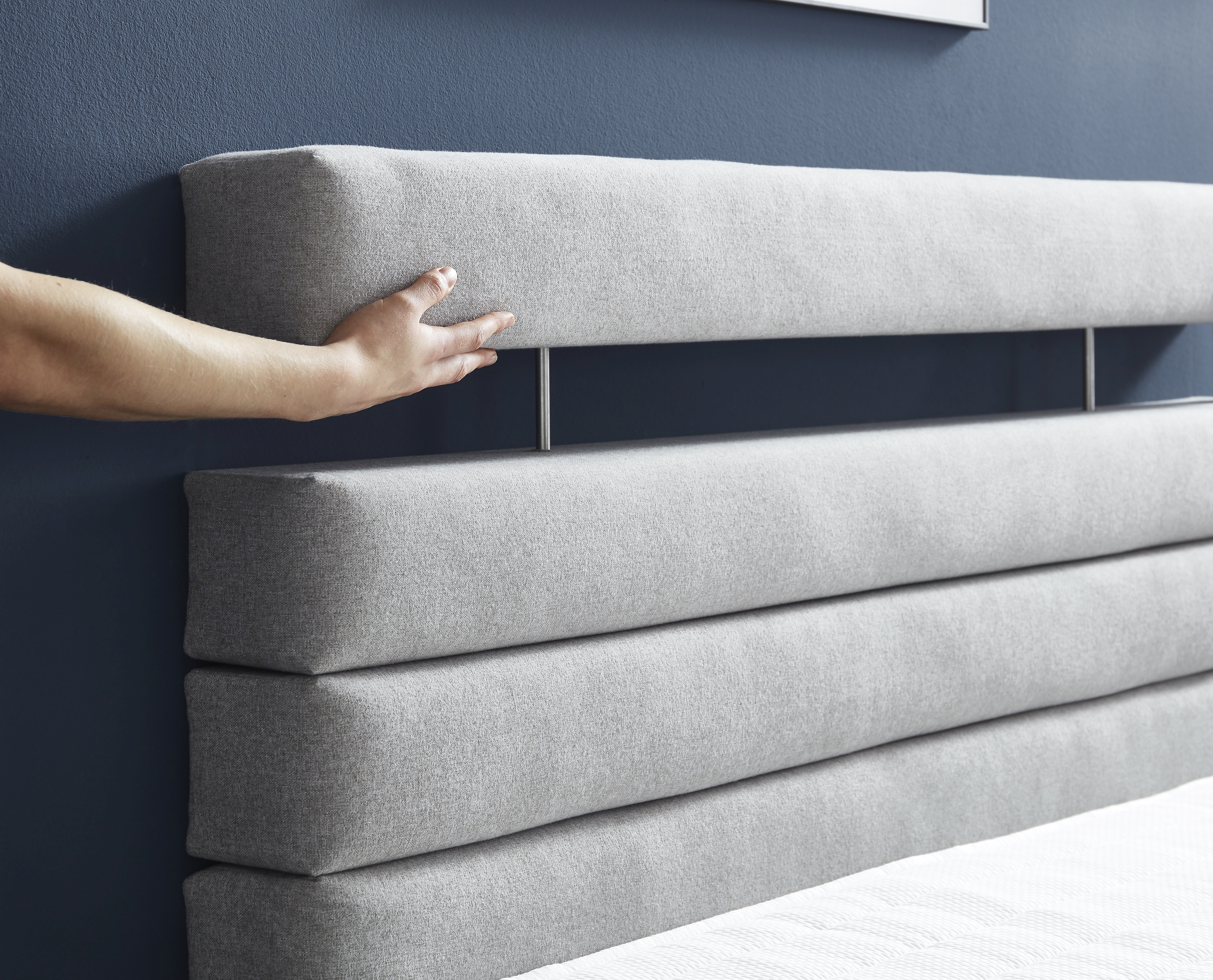Tête de lit réglable en hauteur composée de 4 éléments (élément 1 = env. 74 cm de haut / éléments 2 à 4 env. 12 cm de haut)