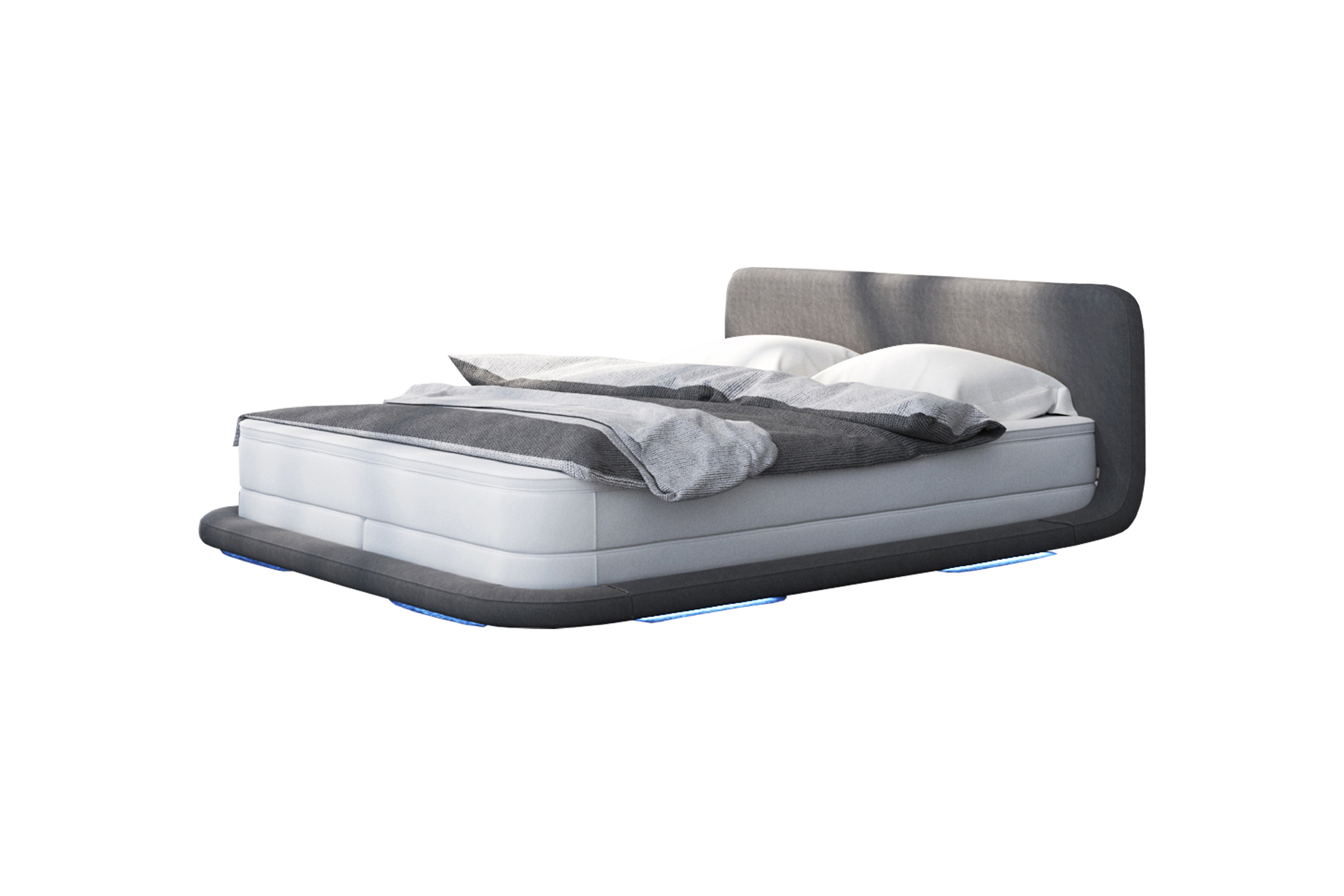 Saviez-vous que vous passez environ un tiers de votre vie à dormir ? Vous aussi, vous rêvez de profiter d'un sommeil réparateur et d’être de bonne humeur le matin pour commencer une nouvelle journée ? Le lit est l’un des meubles les plus importants de votre maison. Notre lit boxspring design vous offre un confort luxueux qui vous fera complètement oublier les tracas de la journée. Dans le caisson en bois se trouve une suspension à ressorts ondulés qui assure une adaptation optimale à votre morphologie. Ce caisson permet une bonne circulation de l’air et une excellente régulation de l’humidité. Sur ce caisson en bois repose un matelas de part en part à ressorts bonnell de qualité supérieure, avec un degré de fermeté H3, qui supporte un poids pouvant aller jusqu'à env. 110 kg. . Ce matelas offre un confort de couchage accru avec une compensation de la température ainsi qu'une bonne évacuation de l'humidité. Le surmatelas en mousse viscoélastique de 5 cm confère à votre lit une touche de confort supplémentaire. Le surmatelas augmente votre confort de sommeil, protège le matelas à ressorts bonnell et prévient encore plus efficacement les douleurs lombaires. L'éclairage LED intégré (2 x 30 cm à chaque fois) sur les côtés est une alternative stylée aux liseuses et lampes de chevet classiques. Les bandeaux LED disposent de 16 nuances de couleur. Cette source de lumière agréable peut être commandée à distance. Le revêtement blanc est en cuir synthétique à la durée de vie accrue et le revêtement gris en tissu résistant