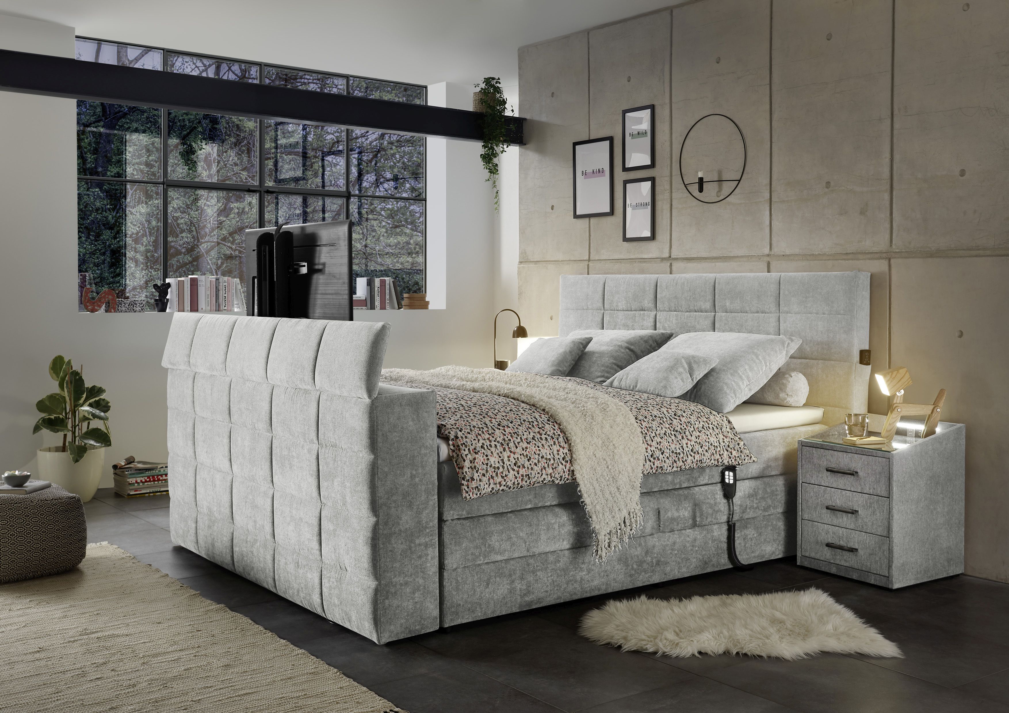 Pied de lit avec fixation TV électrique (pour un téléviseur jusqu'à 40 pouces)