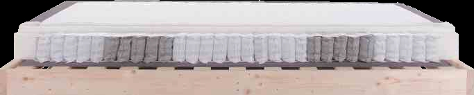 Ce lit boxspring est construit comme suit :caisson avec cadre en épicéa et ressorts ensachés avec revêtement en mousse.au-dessus se trouve 2 matelas séparés : matelas à ressorts ensachés 7 zones, degré de dureté 2 avec revêtement en mousse haute résilience de qualité de 3 mm d'épaisseurLe point final est le surmatelas en gel et en mousse qui met en valeur le système boxspring.