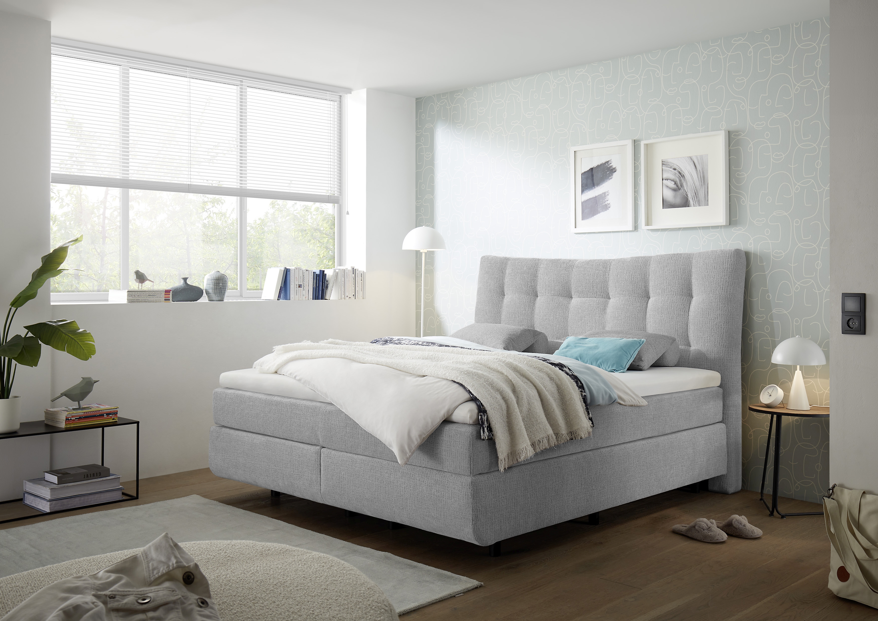 Caisson stable en contreplaqué de qualité ; ressorts bonnell 4 spires 2,2 mm, 1 couche de mousse T25 d'env. 1 cm d'épaisseur