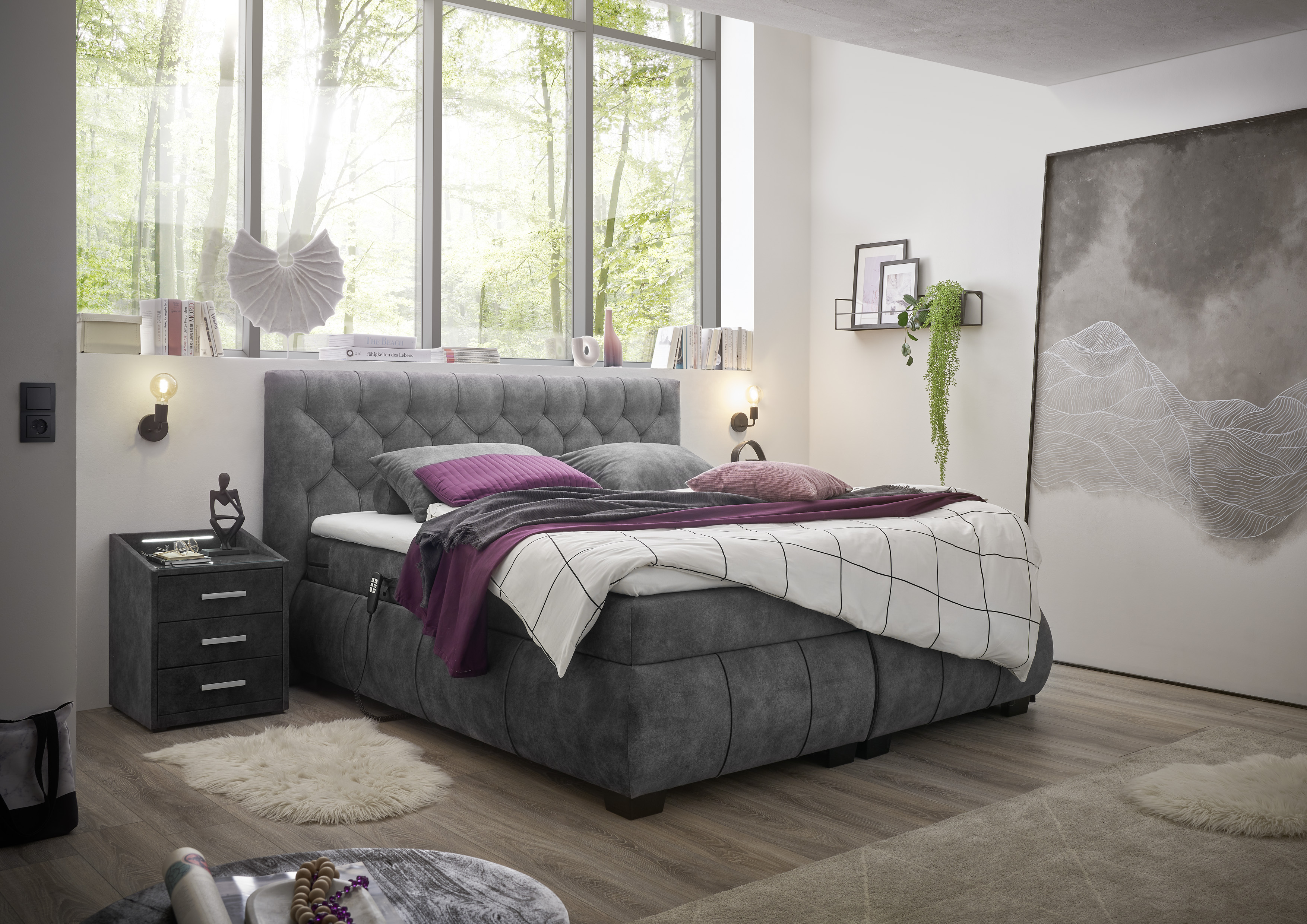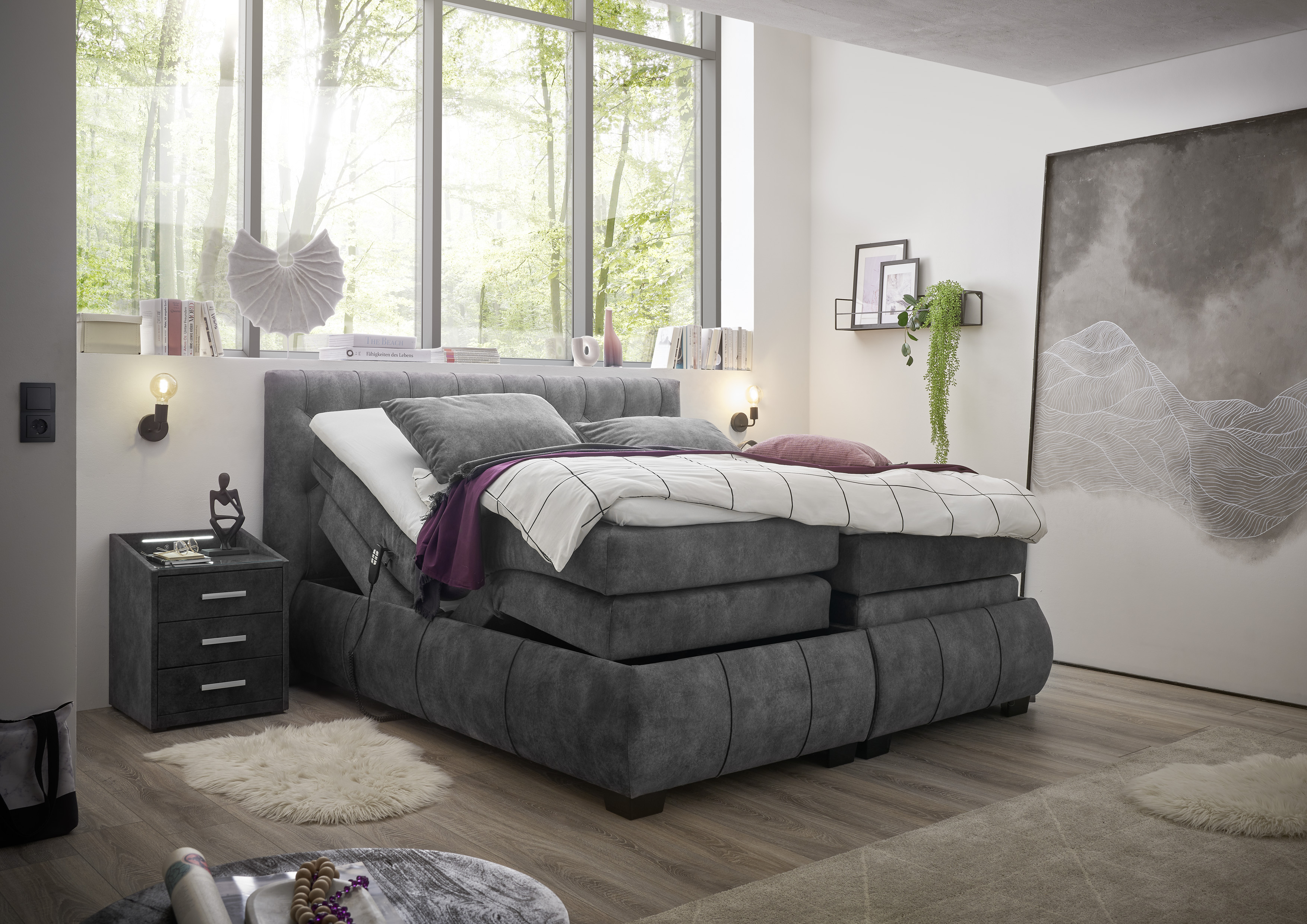 Caisson : structure stable de qualité en contreplaqué ; ressorts ensachés tonneaux, 1 couche de mousse T25 d'env. 1 cm d'épaisseur