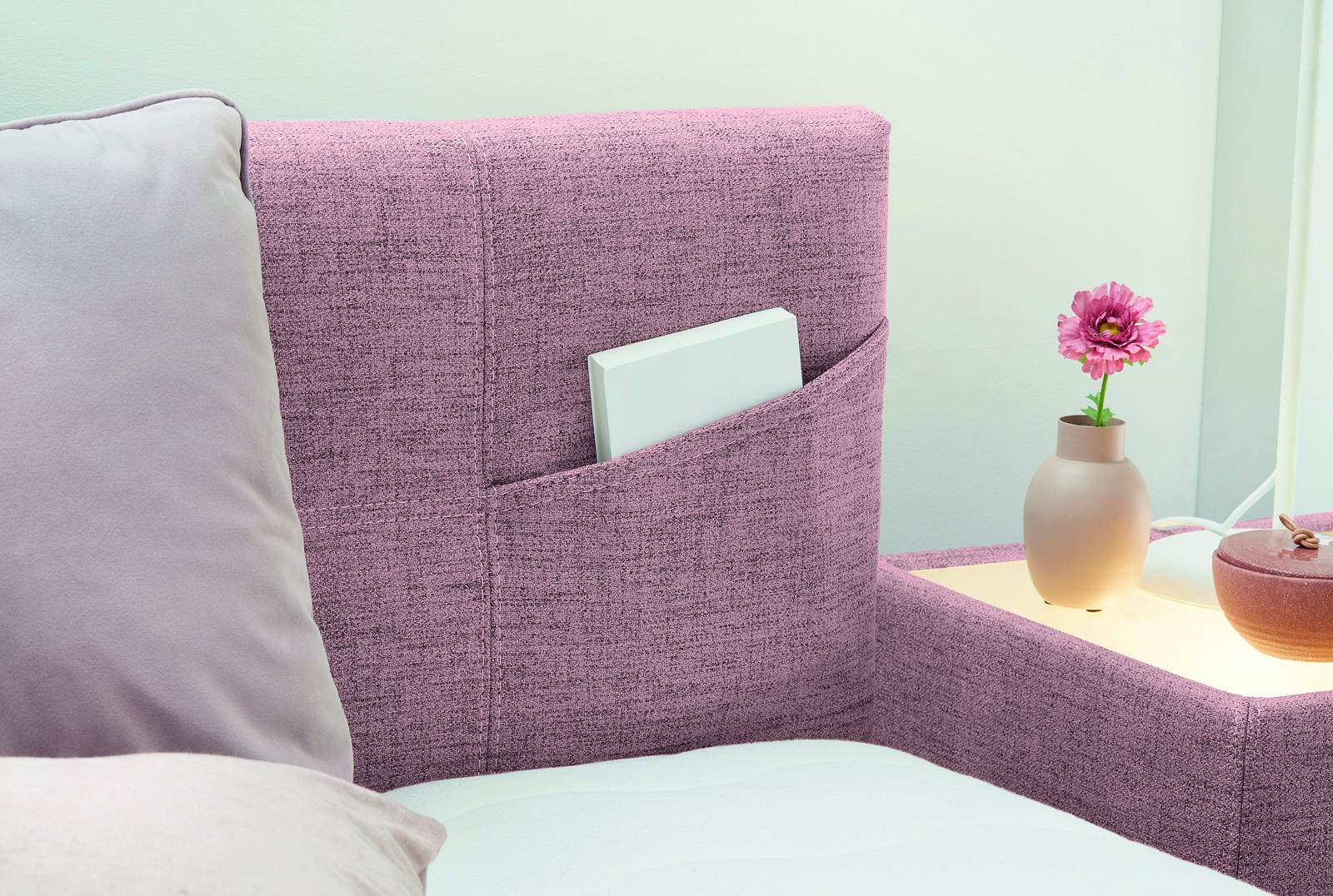 un espace de rangement supplémentaire est offert par les 2 poches dans la tête de lit