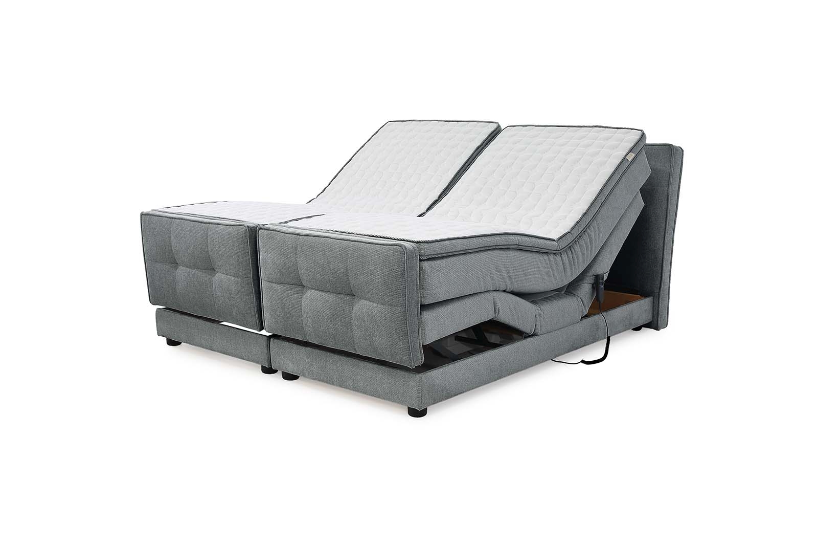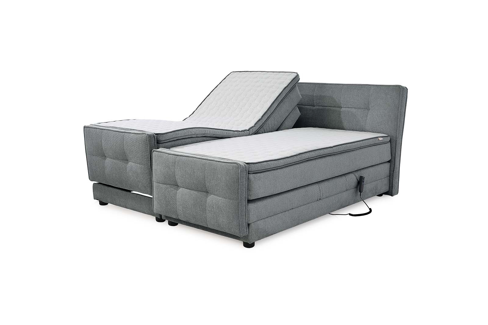 Le point fort de ce lit boxspring est indéniablement le réglage électrique. La télécommande ultra pratique permet de régler facilement la position de couchage favorite grâce à une multitude de réglages de la tête et du pied de lit. Outre son joli design, le pied de lit décoratif offre l’avantage d’empêcher le matelas et le surmatelas de glisser lors du réglage (électrique) du lit.