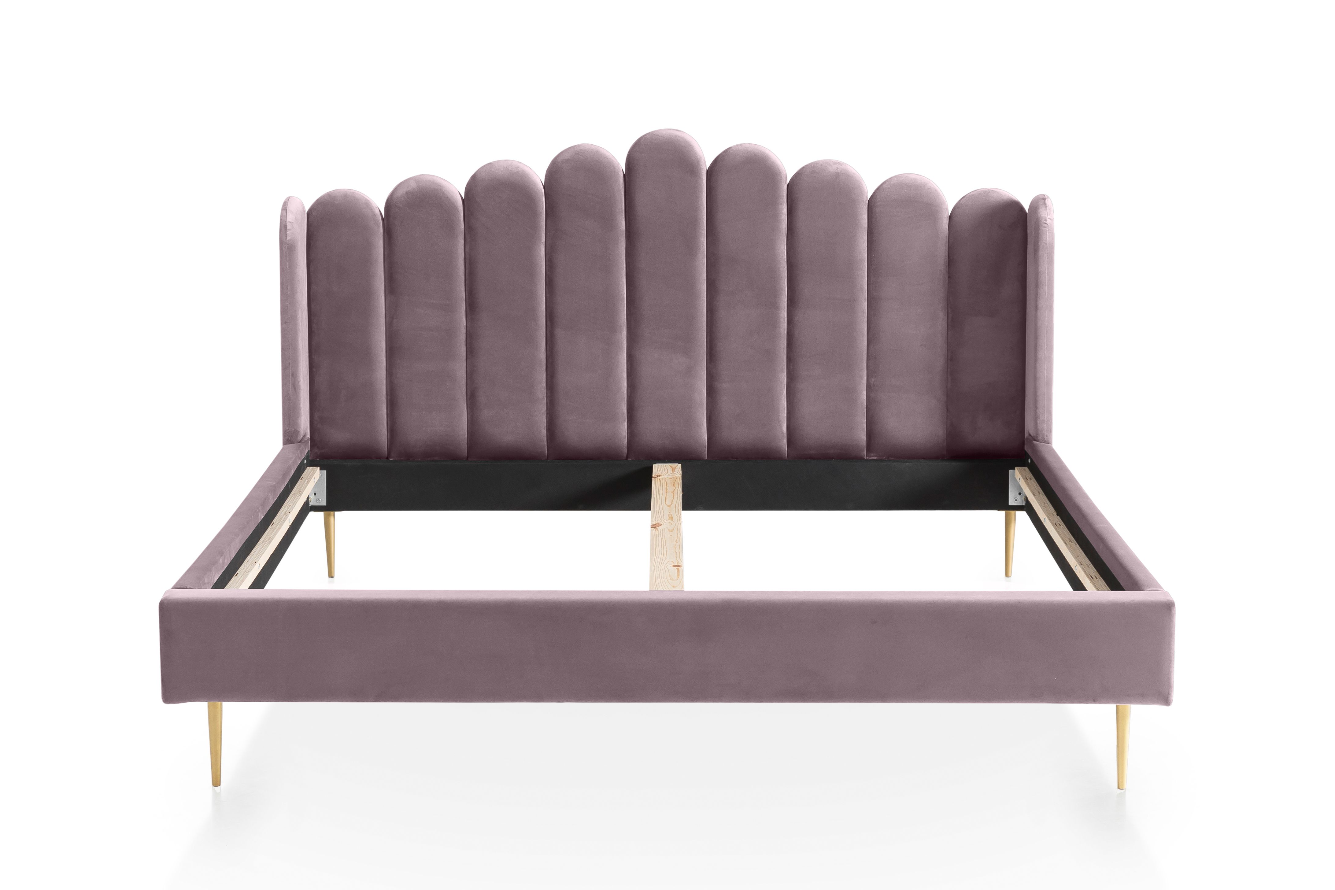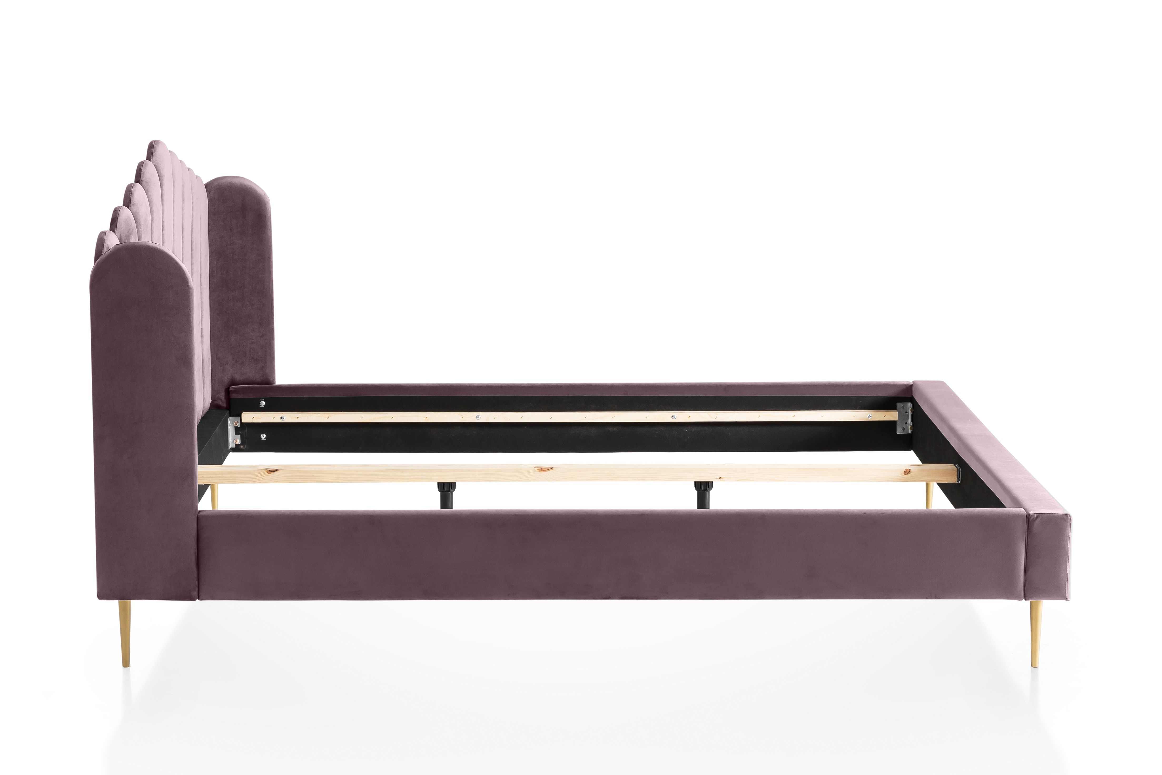Échappez au quotidien et profitez d'une petite pause. Le lit capitonné en forme de coquillage séduit par son revêtement en velours et sa tête de lit joliment travaillée. Les 4 pieds en métal doré assurent une excellente stabilité tout en offrant un superbe contraste avec le revêtement du lit. L'espace de 18 cm de hauteur sous le cadre de lit peut également servir d'espace de rangement. La forme arrondie de la tête de lit lui donne un look tout en douceur. Ce petit bijou en matière de design deviendra rapidement un élément phare de votre chambre à coucher ainsi que votre nouvel espace bien-être pour des nuits détendues