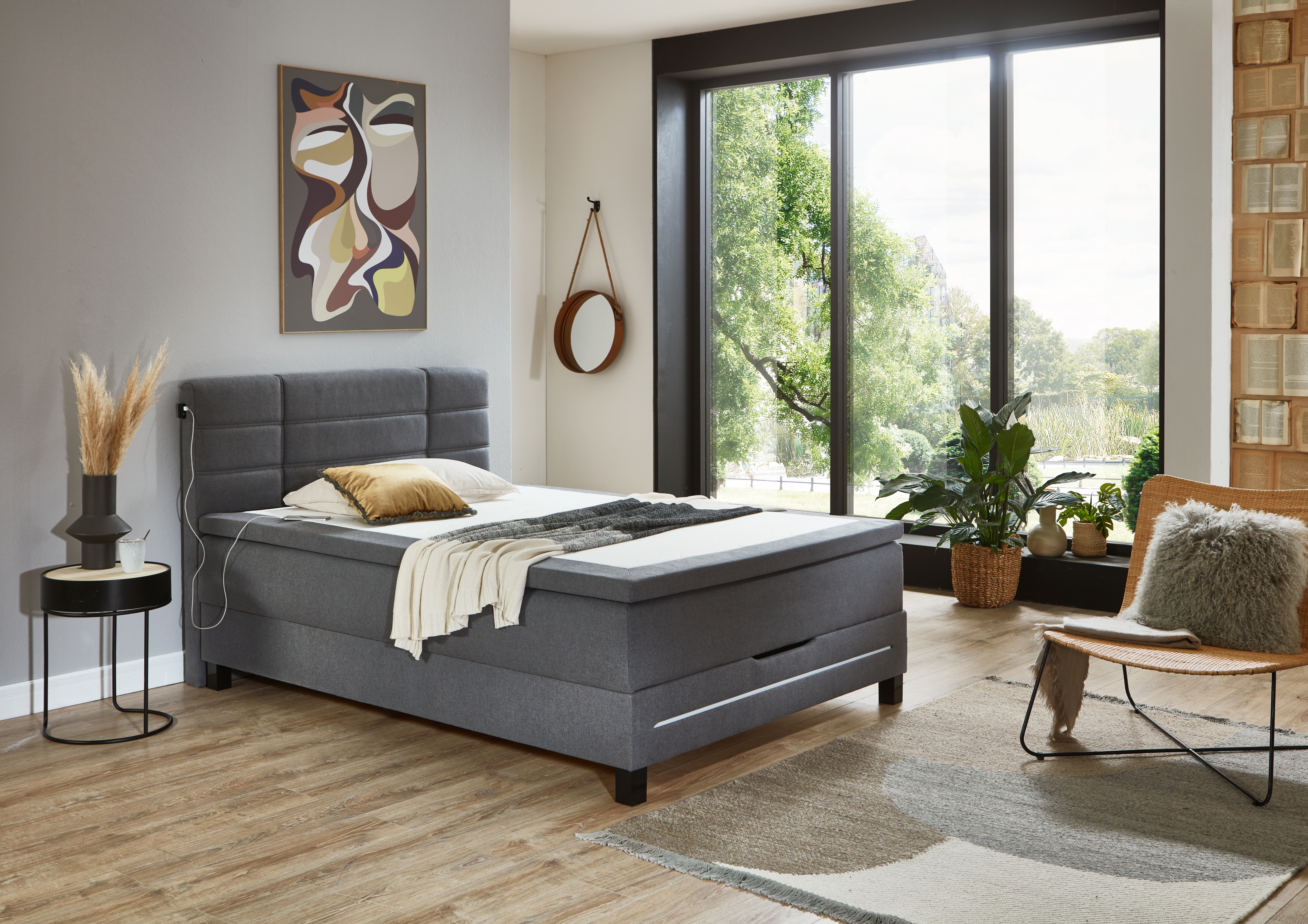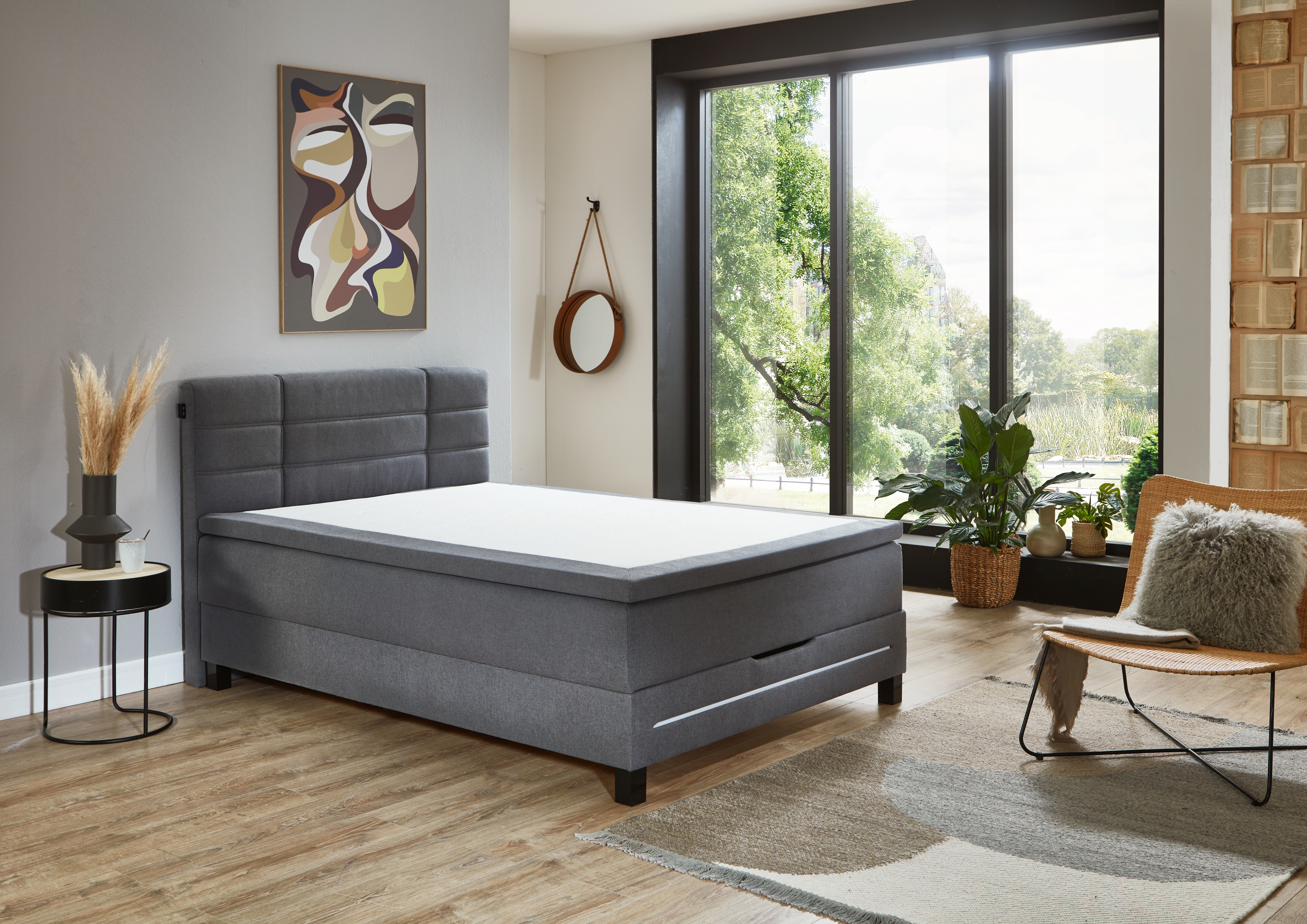 1 structure de base avec coffre de lit et double garnissage à ressorts