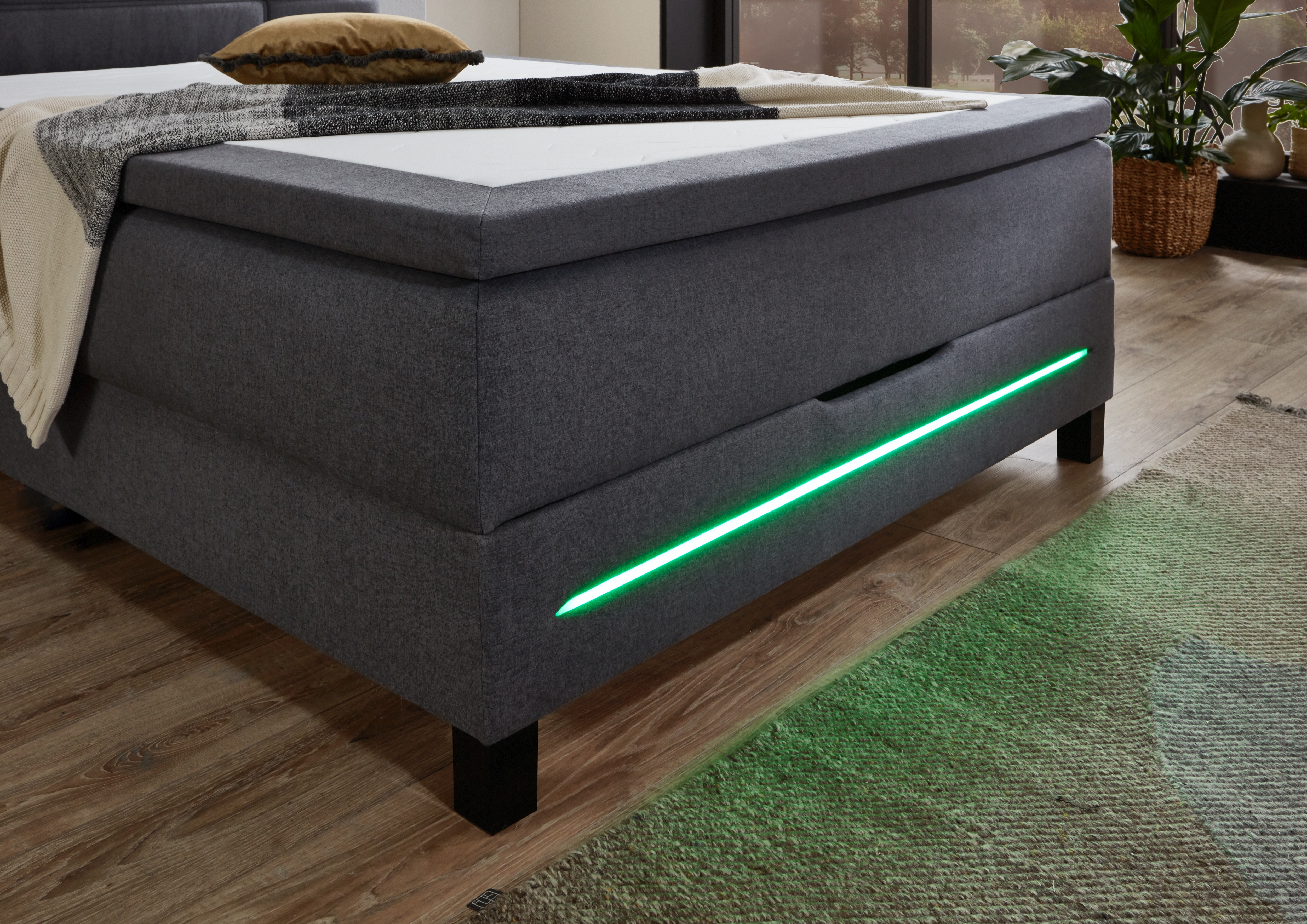 Avec bandeau lumineux RVB (multicolore) intégré dans le coffre de lit