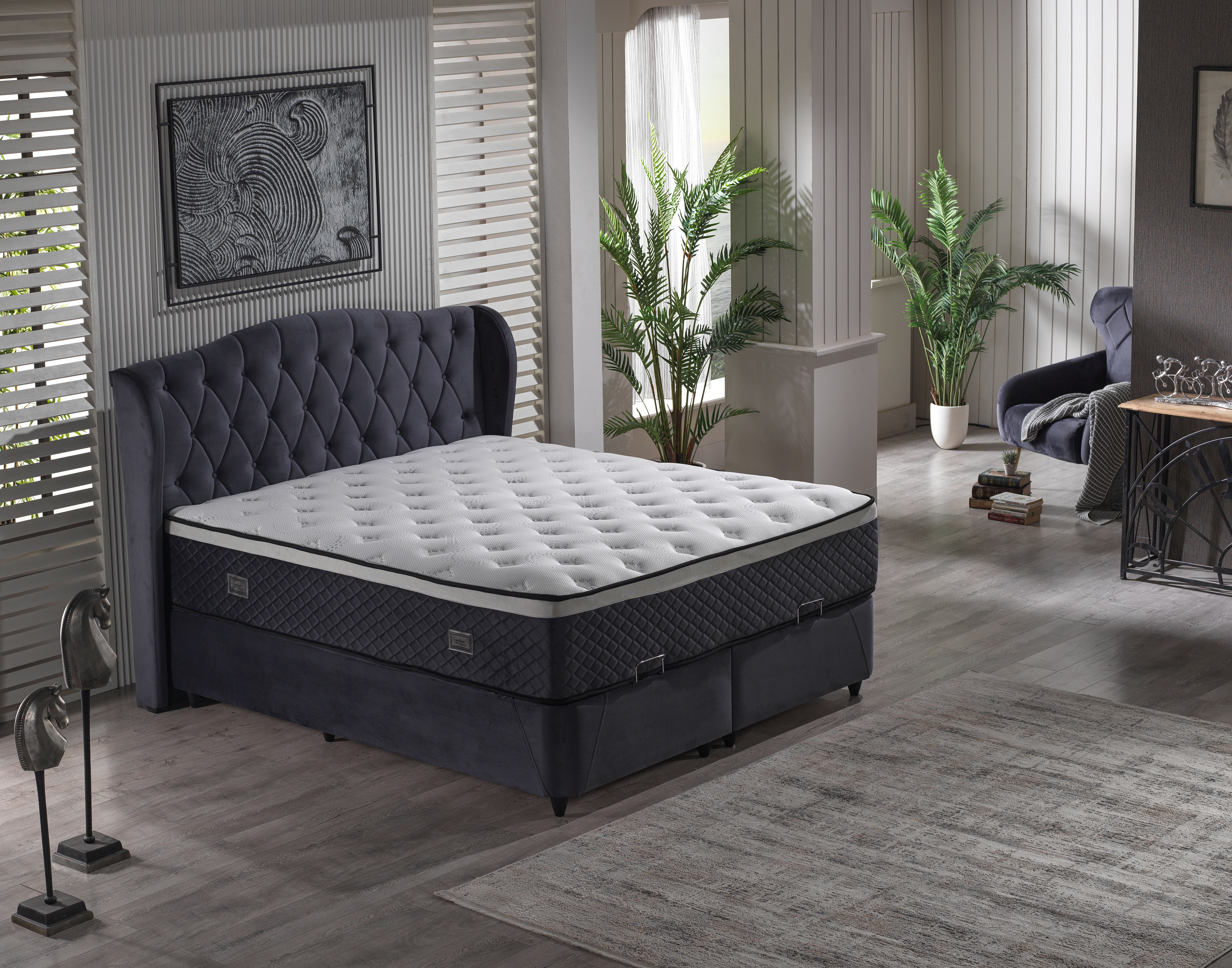 | Type de lit: | Lit boxspring, Lit double, Lit rembourré | ||
