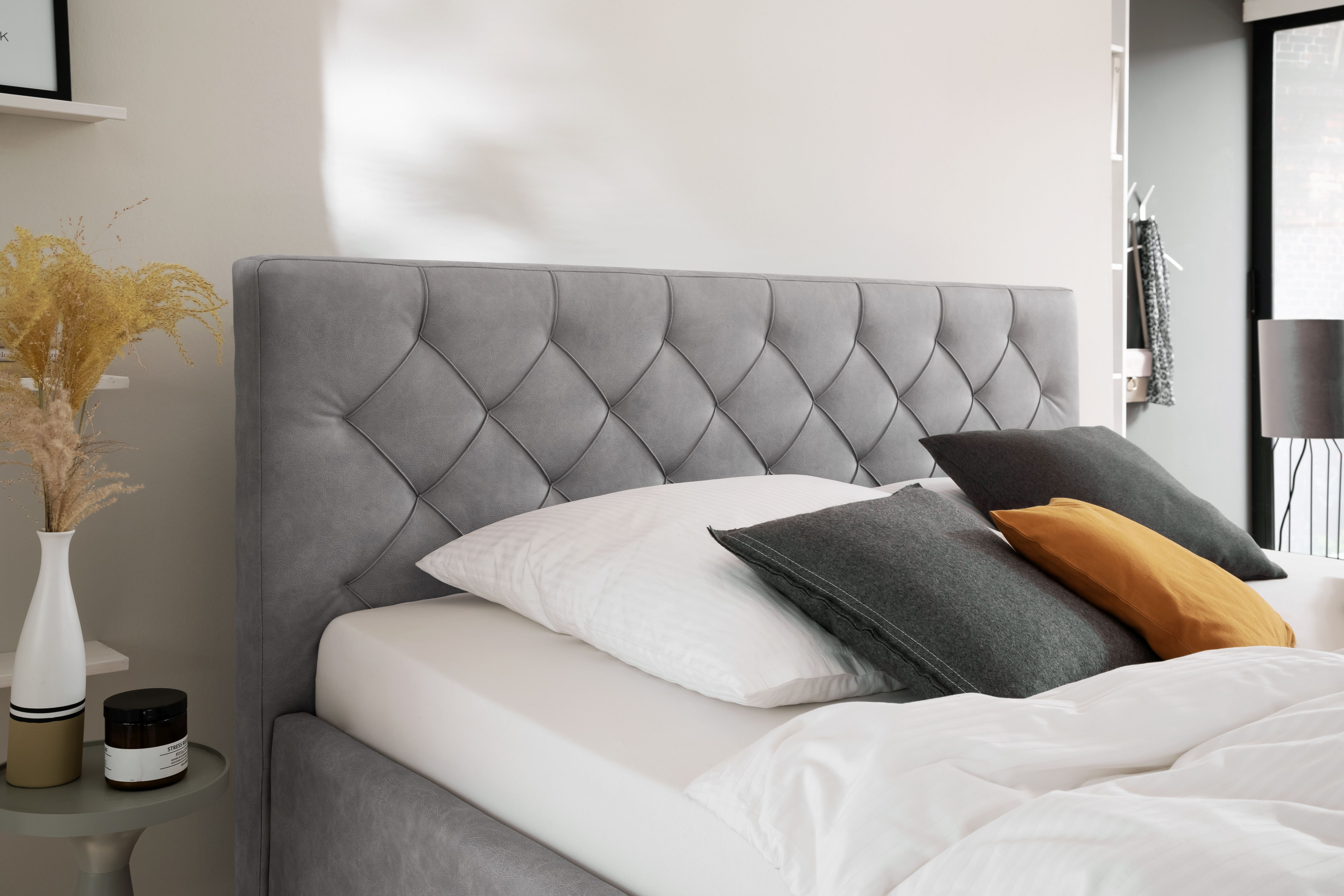 inclus 2 matelas 7 zones à ressorts ensachés tonneaux Toscana (2 x 90x200 cm) avec zones de régulation de l'humidité en fibres de polyester (2 faces), mousse confort offrant un excellent maintien (2 faces), régulation de la pression en non-tissé (2 faces) et fermeture éclair 3 faces avec env. 500 ressorts bruts/m²