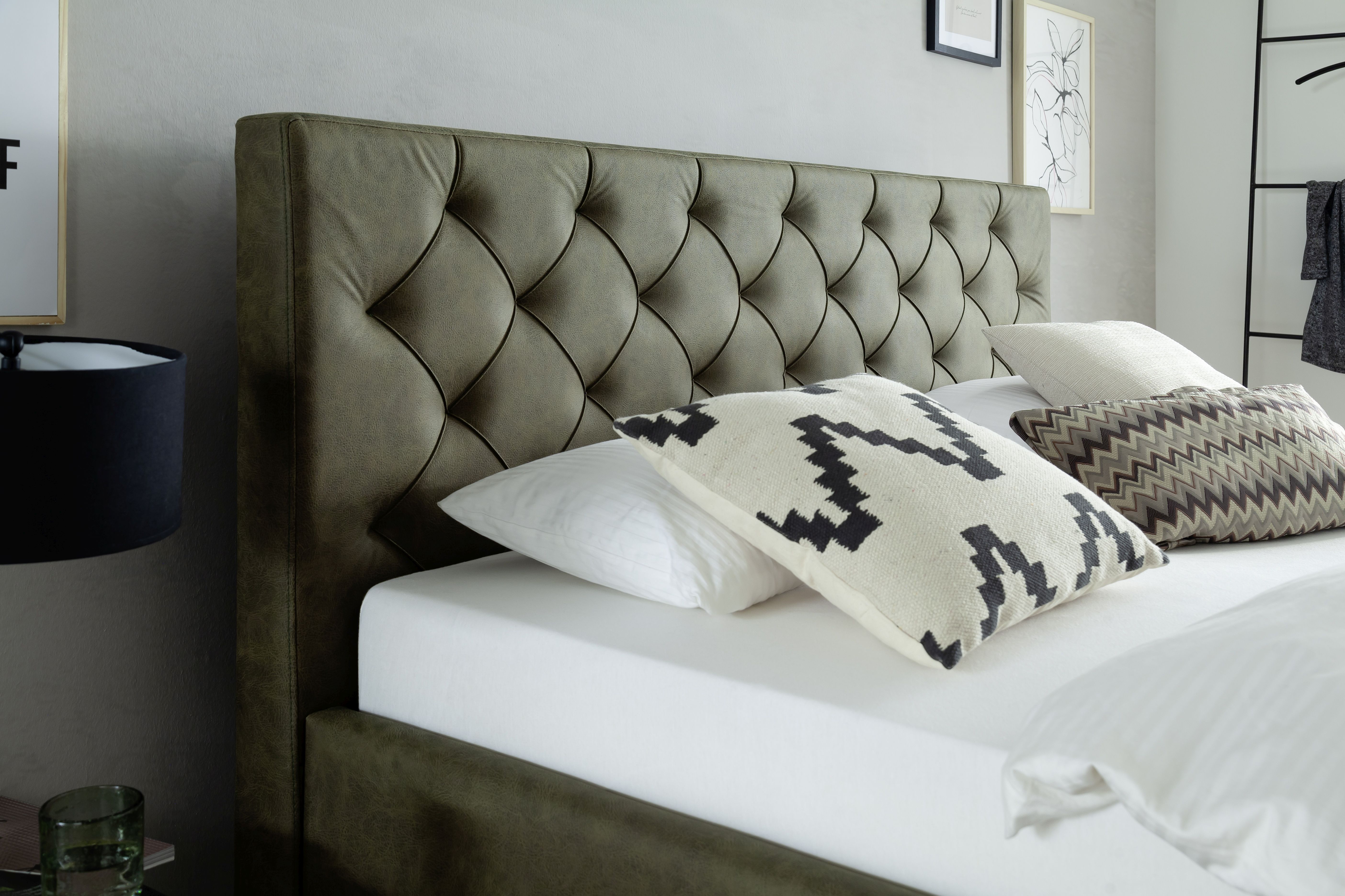 Tête de lit avec matelassage en forme de losanges