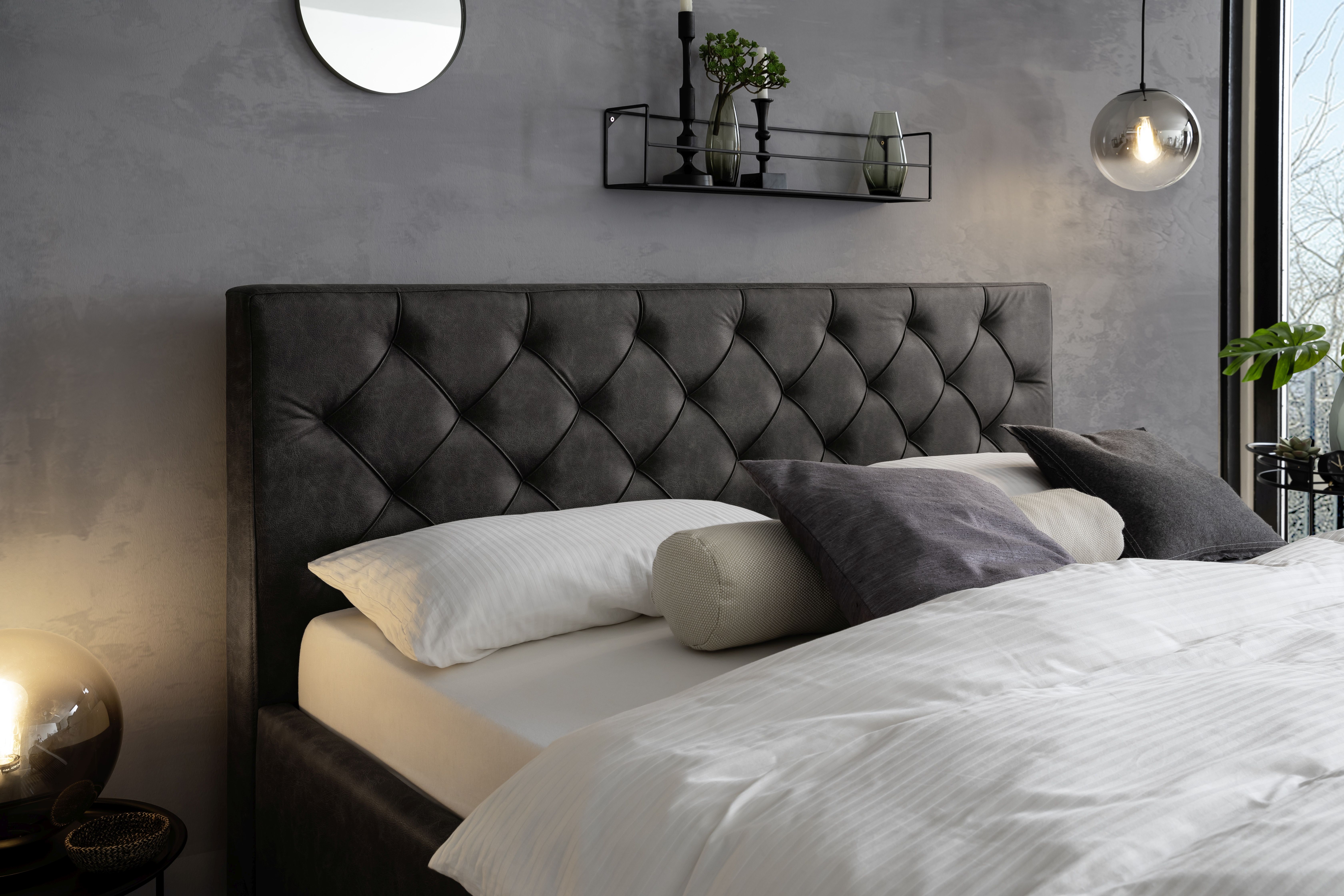 inclus 2 matelas 7 zones à ressorts ensachés tonneaux Toscana (2 x 90x200 cm) avec zones de régulation de l'humidité en fibres de polyester (2 faces), mousse confort offrant un excellent maintien (2 faces), régulation de la pression en non-tissé (2 faces) et fermeture éclair 3 faces avec env. 500 ressorts bruts/m²