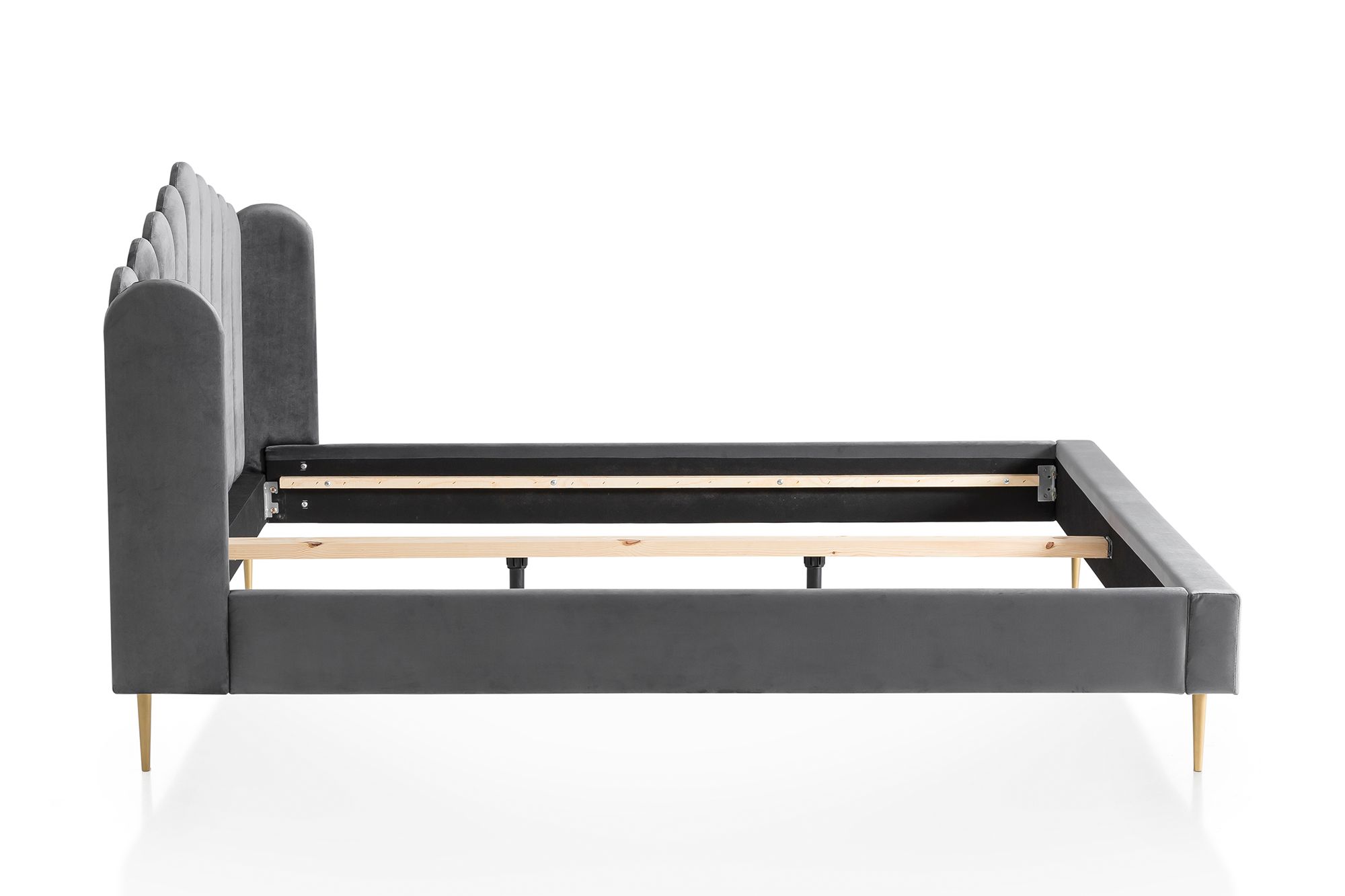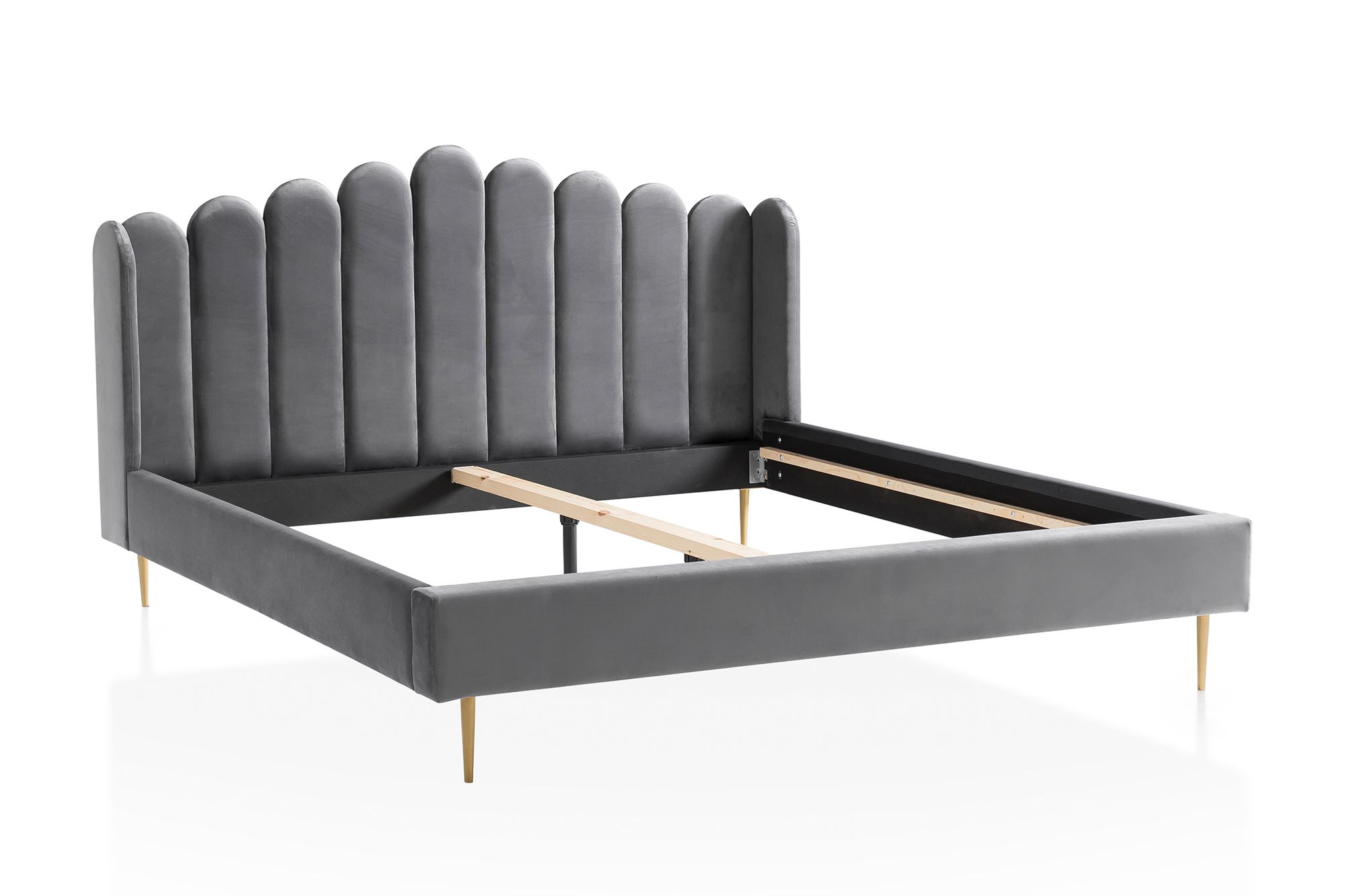 Échappez au quotidien et profitez d'une petite pause. Le lit capitonné en forme de coquillage séduit par son revêtement en velours et sa tête de lit joliment travaillée. Les 4 pieds en métal doré assurent une excellente stabilité tout en offrant un superbe contraste avec le revêtement du lit. L'espace de 18 cm de hauteur sous le cadre de lit peut également servir d'espace de rangement. La forme arrondie de la tête de lit lui donne un look tout en douceur. Ce petit bijou en matière de design deviendra rapidement un élément phare de votre chambre à coucher ainsi que votre nouvel espace bien-être pour des nuits détendues.