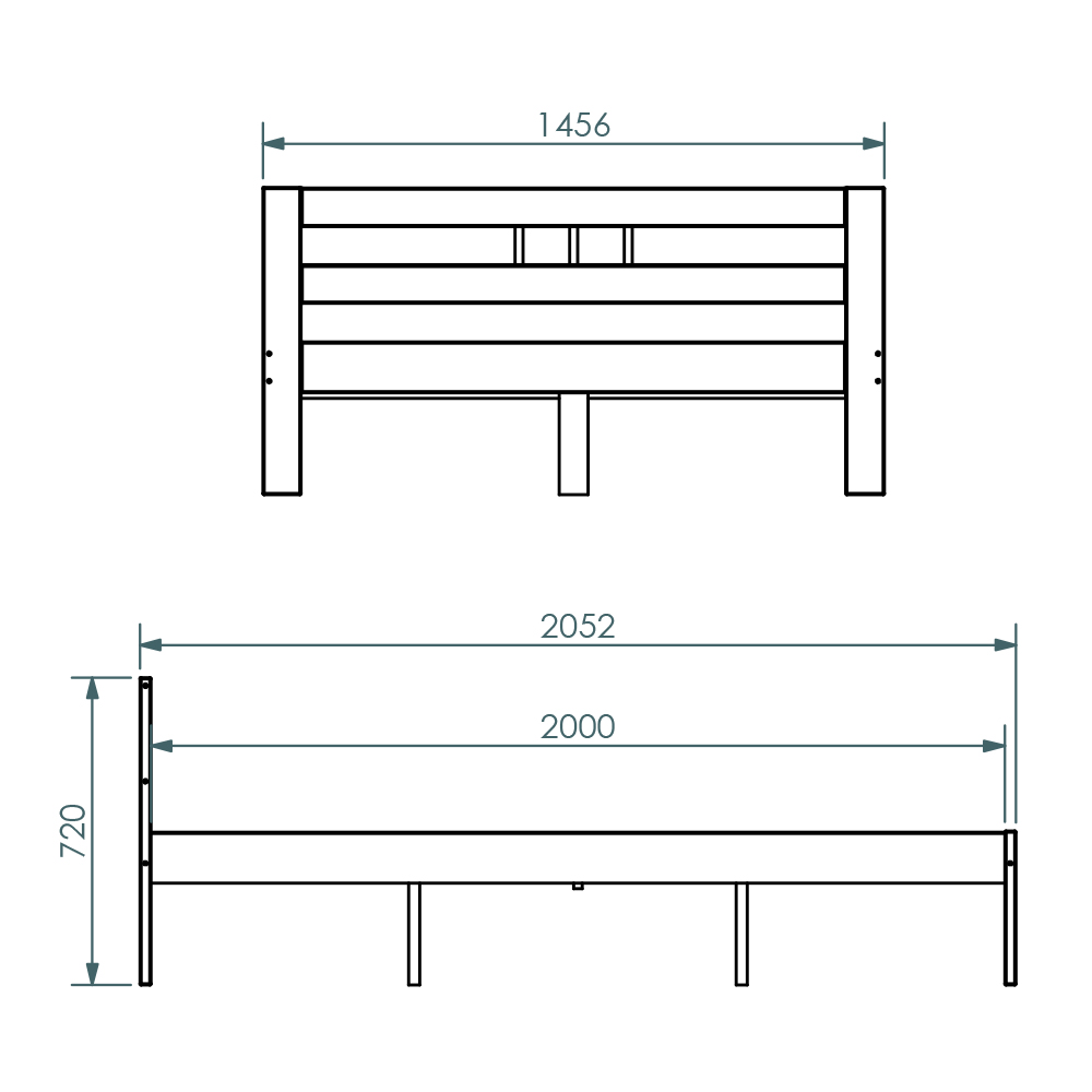 | Dimensions : | B/H/L : env. 145/72/205 cm; profondeur d'insertion sommier env. 7 cm |