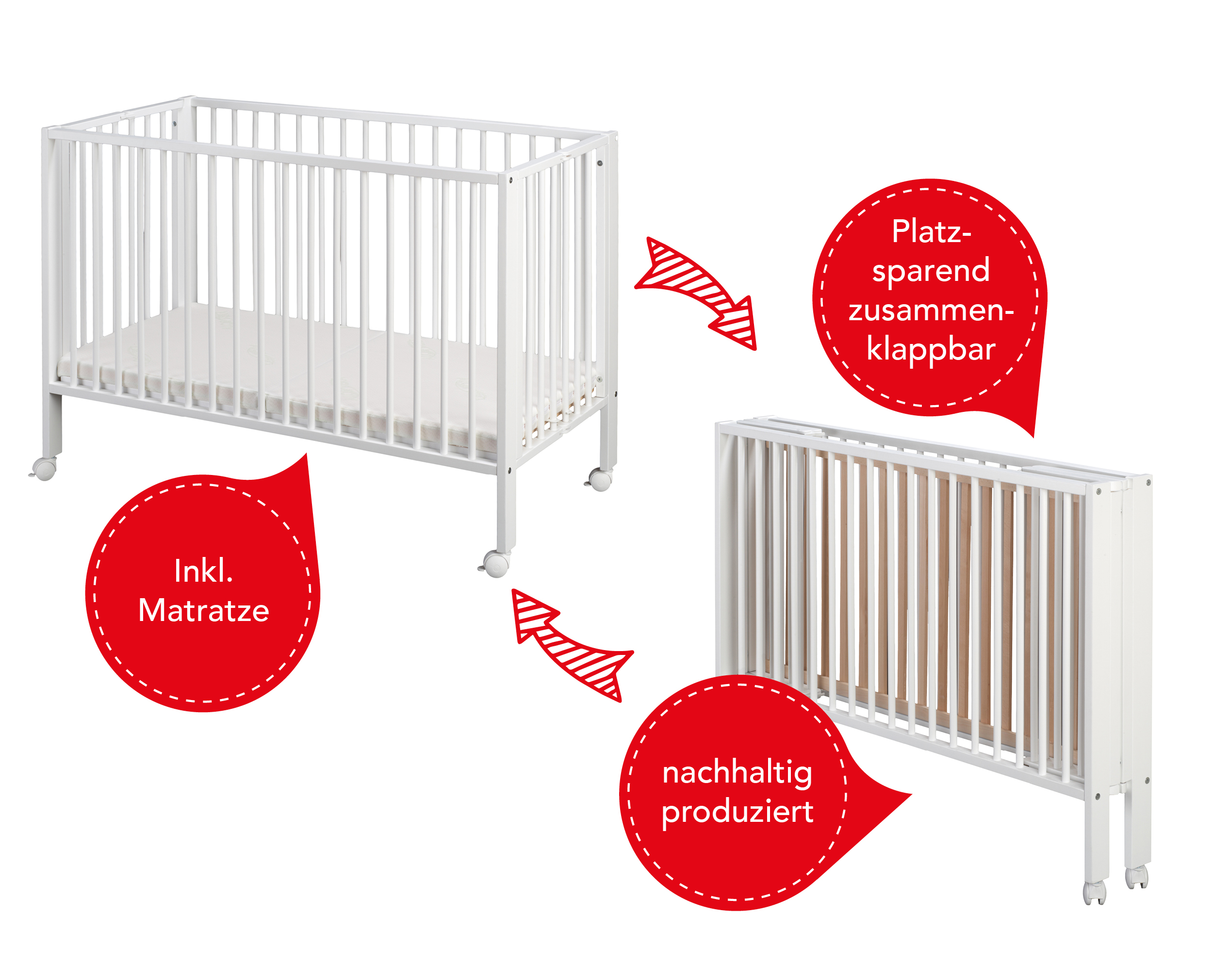 Grâce à sa fonction pliante sans outils, le lit est monté rapidement – et démonté et rangé tout aussi facilement.
