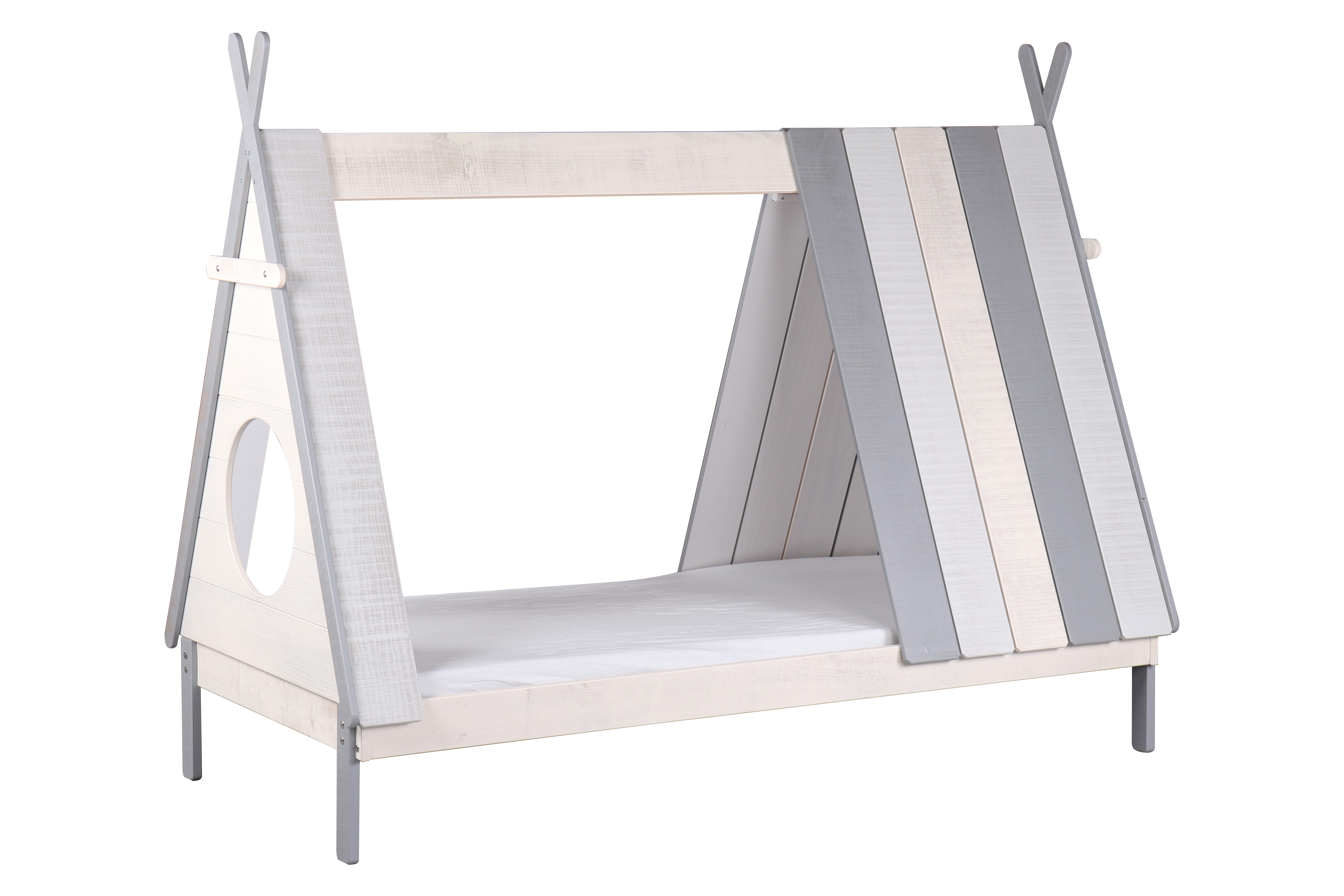 Si vous souhaitez aménager la chambre de votre enfant de façon individuelle, ce lit dans une jolie forme de tipi est exactement ce qu'il vous faut. Avec ce lit, votre enfant peut laisser libre cours à son imagination et plonger dans un univers rempli de jeux. Ce lit enfant avec sa forme unique garantit des nuits peuplées de jolis rêves tandis qu'il représente une belle place de jeu idéale en journée pour vos petits chéris. Les lattes en bois dans les tons bleu et gris pâle s'intègrent merveilleusement dans différents styles d'intérieur et diverses palettes de couleurs. Associé à des meubles sobres ton blanc ou gris ou en contraste à un mobilier coloré, ce lit junior est une solution unisexe moderne pour la chambre d'enfant. Les deux fenêtres rondes à l'avant et à l'arrière du lit permettent de se cacher ou de se montrer et de s'amuser. Grâce aux lattes en bois couvrant une partie du lit, votre enfant ne peut pas tomber ou glisser du lit. Le sommier à lattes prévu pour un matelas de 90x200 cm est compris dans la livraison. Un tiroir dans les mêmes teintes est disponible séparément pour encore plus d'espace de rangement.