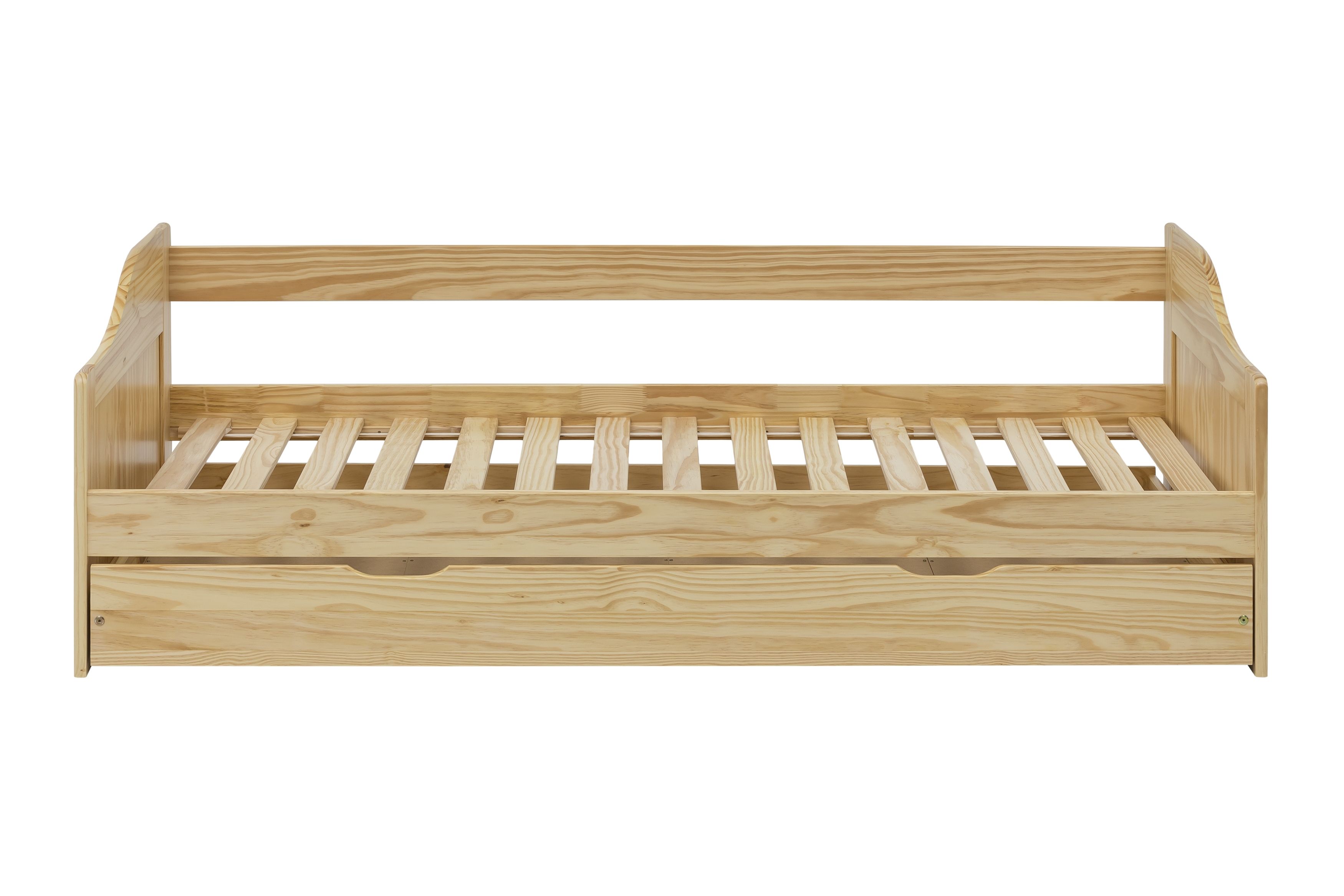 Le lit gigogne dispose d'un couchage principal de 90 x 200 cm. Dans le tiroir à roulettes s'ouvrant facilement se trouve un deuxième couchage qu'il est possible de déployer rapidement pour les invités qui dorment à la maison. Ce lit offre un espace suffisant pour dormir et se sentir bien. Les sommiers à lattes prévus pour des matelas de 90x200 cm sont compris dans la livraison. Ce lit une personne est idéal pour les pièces exiguës et trouvera sa place aussi bien dans la chambre d'enfant que dans la chambre d'amis.