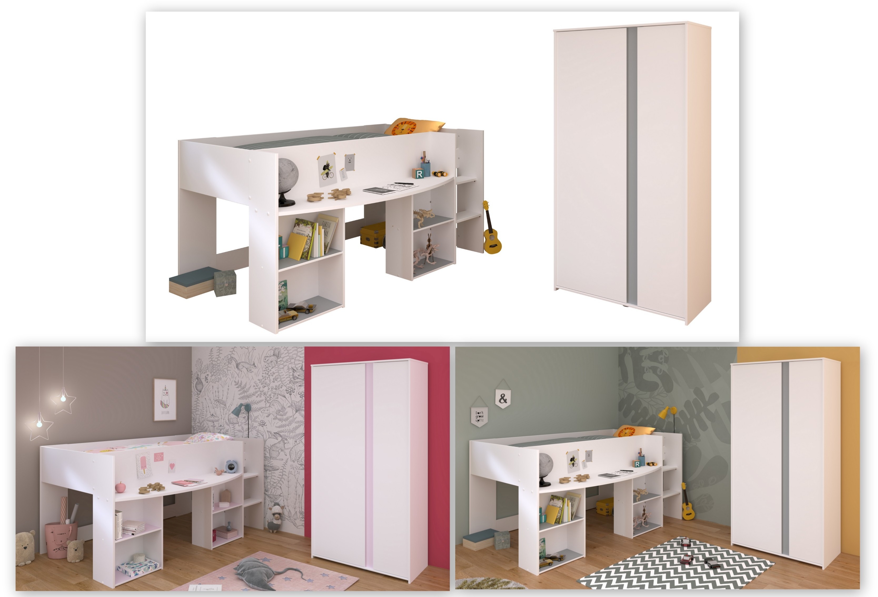 Caisson et façade : 23-ton blanc / 001-rose/ 002-gris caillou
