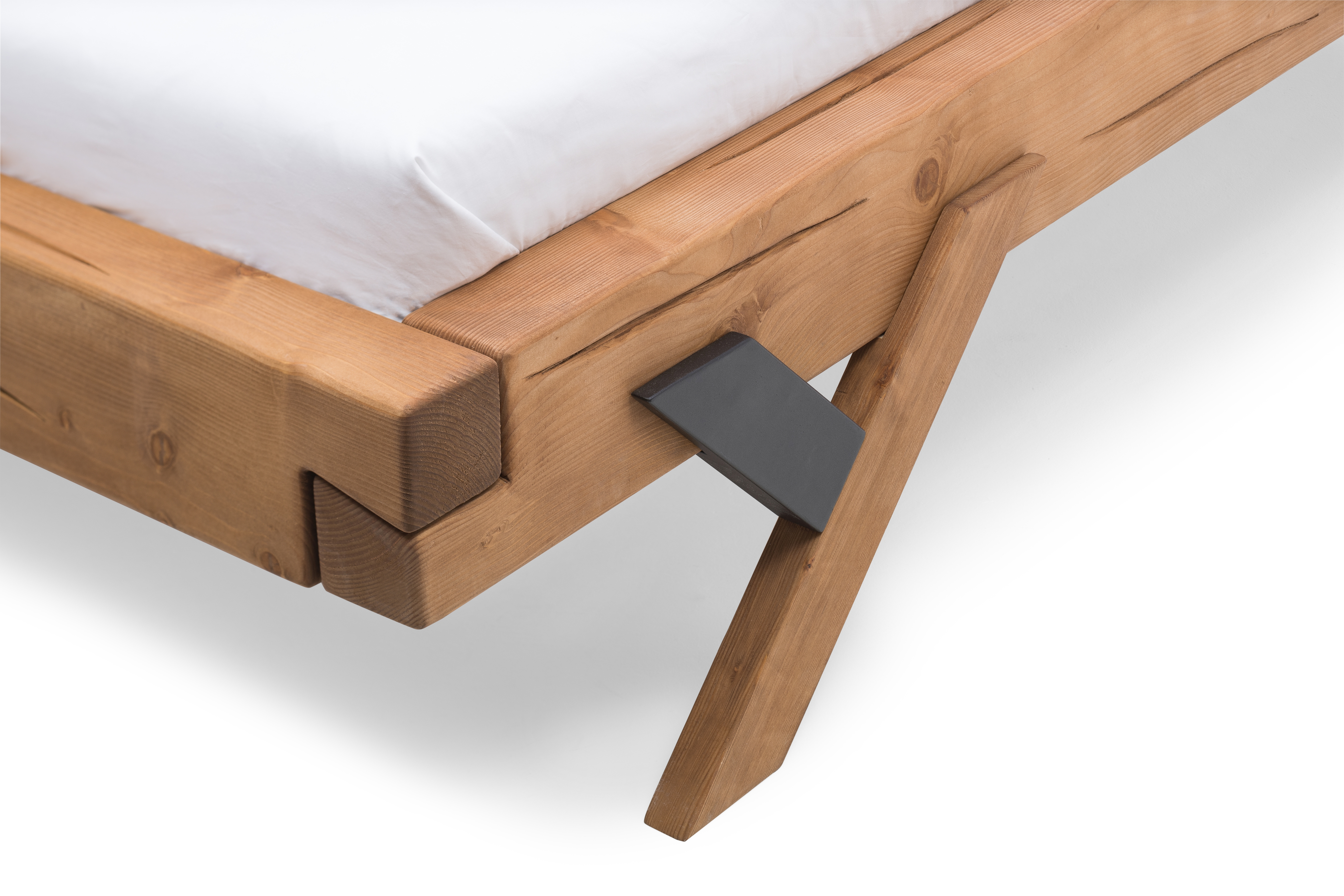 Ce lit rustique aspect bois de charpente en bois massif de qualité supérieure créera une ambiance authentique dans votre chambre à coucher. Le cadre de lit robuste en épicéa massif apporte un concentré de nature dans votre intérieur et assure stabilité et longévité. L’épicéa est très prisé pour les meubles en bois massif grâce à sa structure vigoureuse. Les fentes et les nœuds du bois font de ce lit une pièce unique fascinante au charme remarquable. Les assemblages d’angle caractéristiques attirent particulièrement l’attention sur ce lit en bois massif. Ce type d'assemblage ne souligne pas seulement l'aspect solide du bois : il garantit également une grande robustesse. Les pieds en Y avec contrastes ton noir lui donnent une touche tendance. L'aspect massif de ce lit en bois est adouci grâce à la tête de lit inclinée avec espacements en biais. Ce lit solide allie style moderne et fabrication traditionnelle dans un meuble durable. Avec ce lit en bois massif, c’est un meuble particulièrement facile d’entretien qui s’installe chez vous. Les surfaces huilées sont très faciles d'entretien, robustes et protégées de la poussière et des salissures. Les petites salissures peuvent être nettoyées à l’aide d’un chiffon légèrement humide.