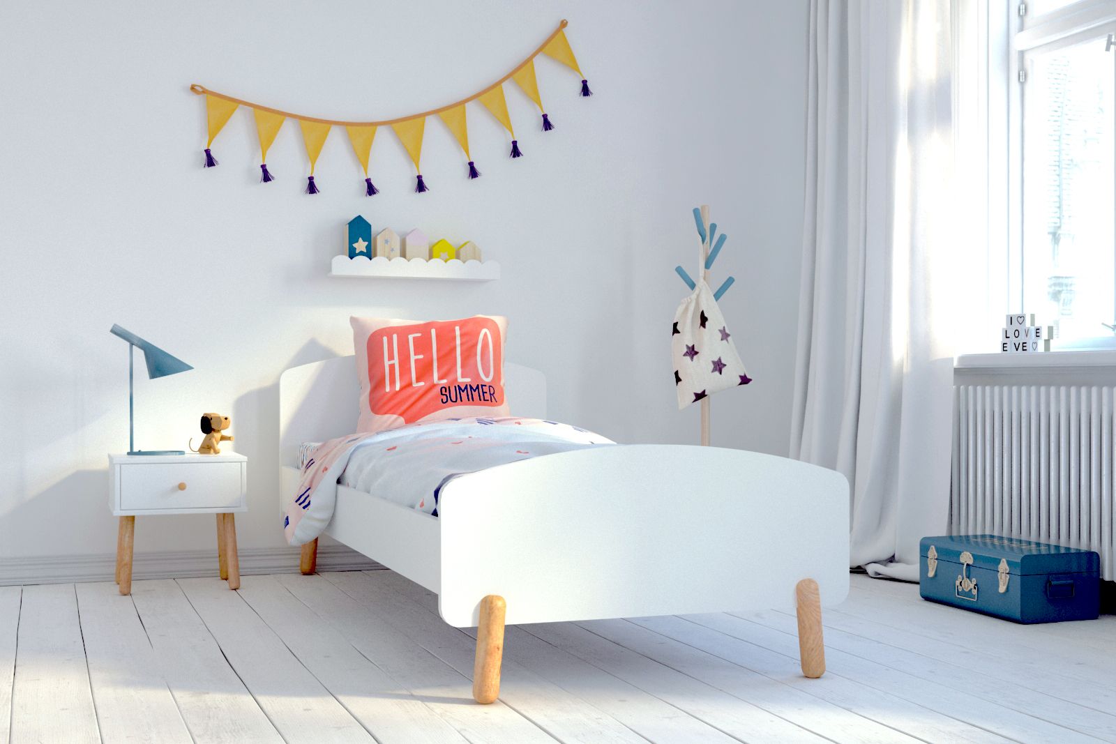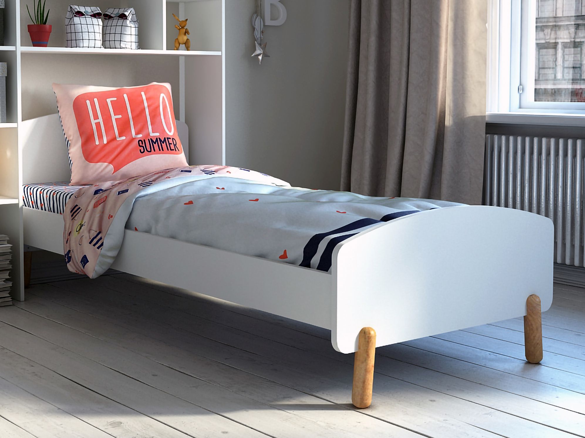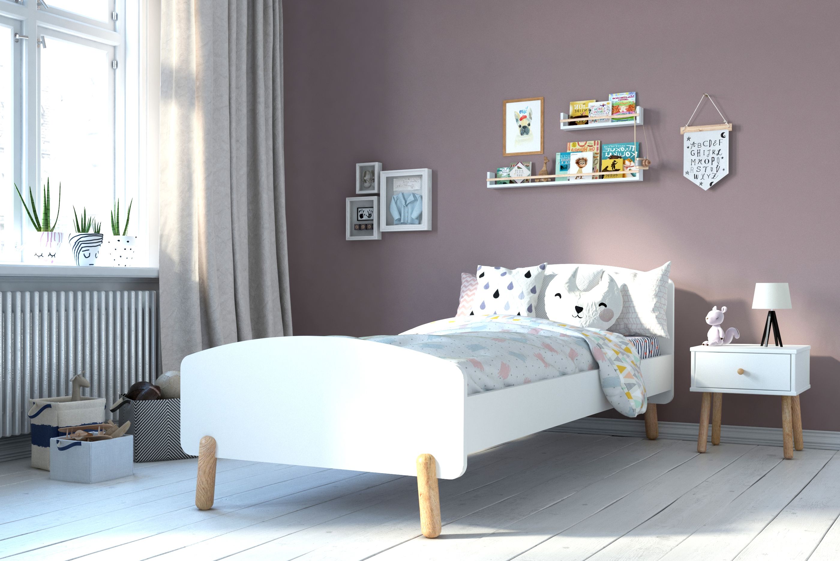 Ce lit dans un design scandinave séduit par sa sobriété et son minimalisme qui permettent de l'intégrer facilement dans tout type d'intérieur. Le sommier à lattes pour une taille de matelas de 90x200 cm est compris dans la livraison. Le lit est fabriqué en bois de pin robuste et MDF laqué ton blanc. L'aspect neutre permet de l'utiliser comme lit d'enfant mais plus tard également sans aucun problème comme lit d'adolescent.