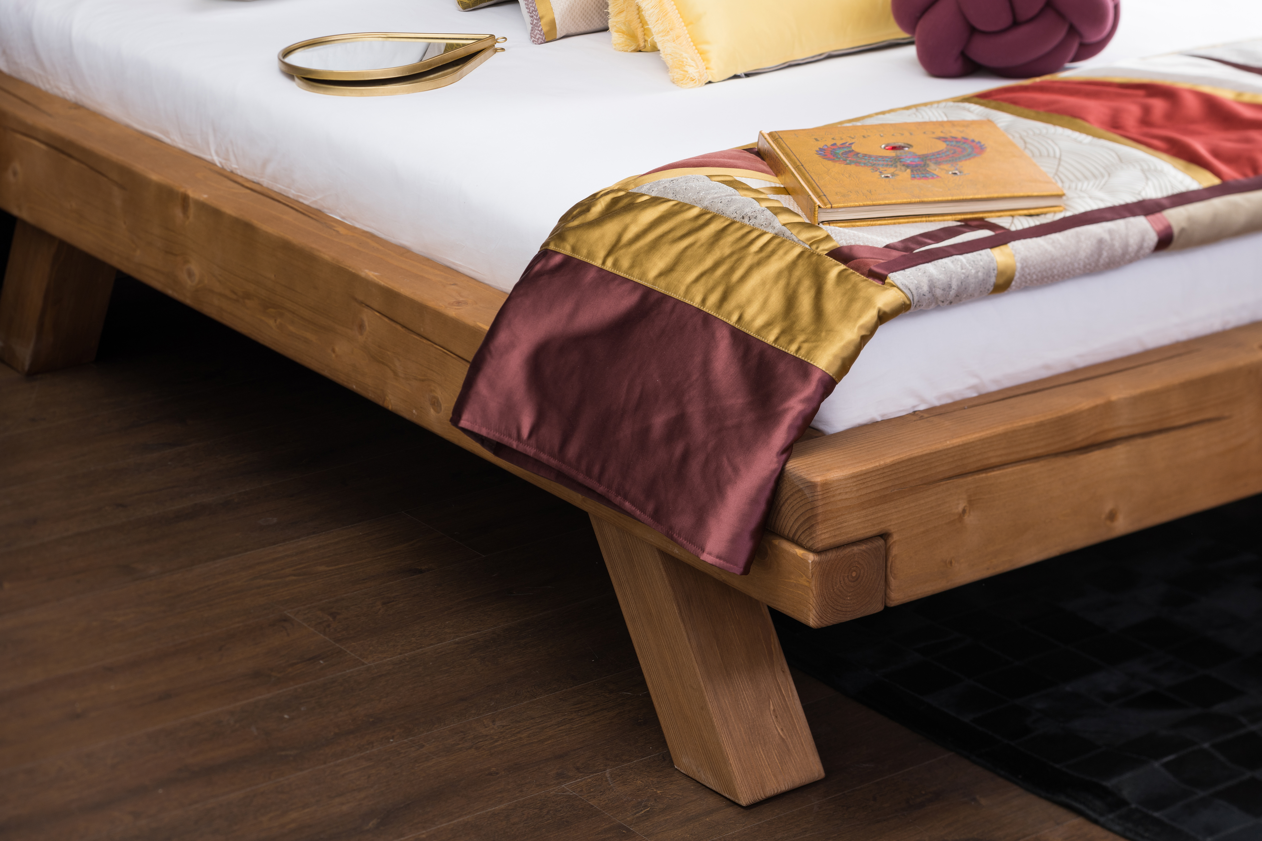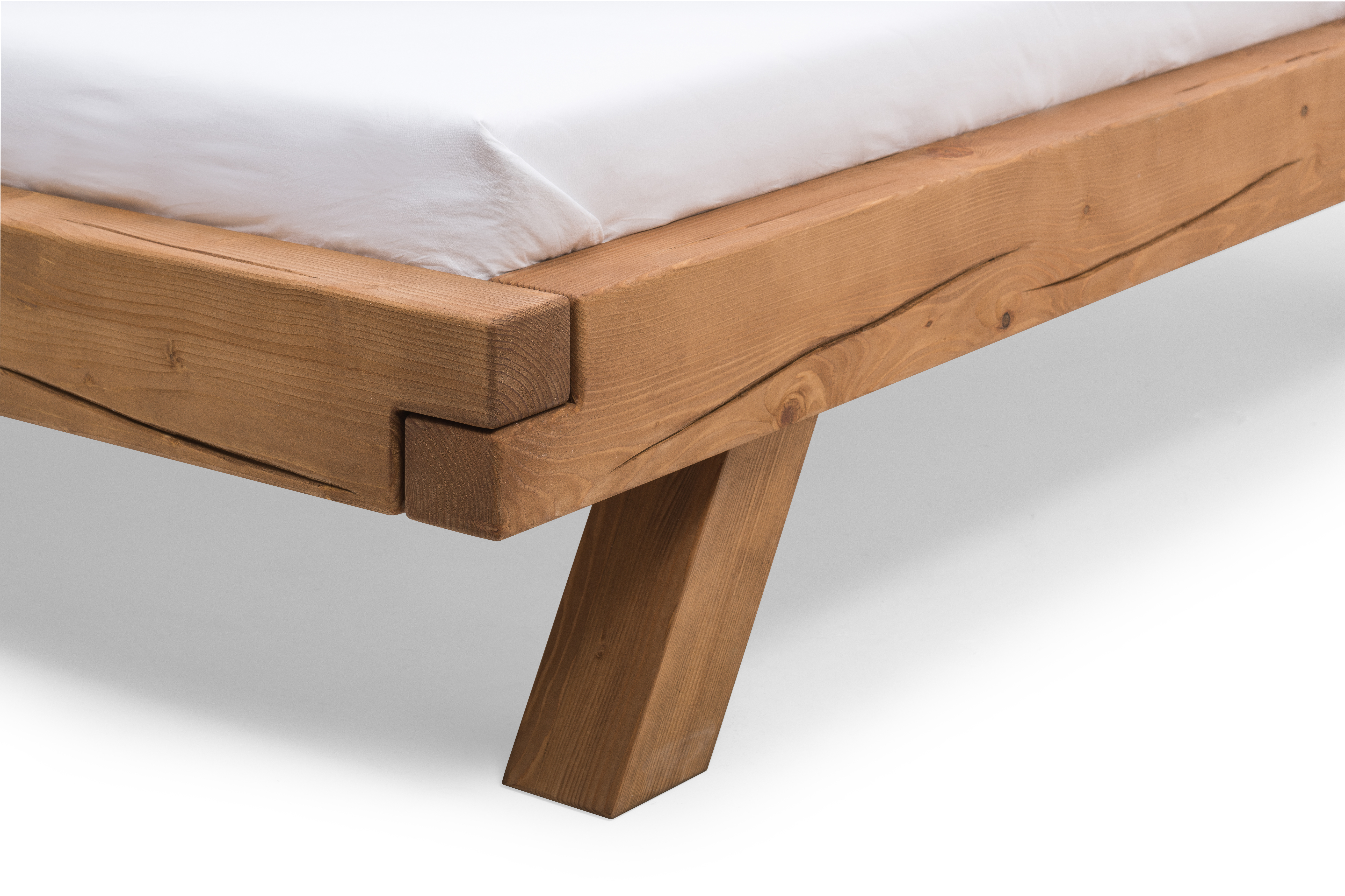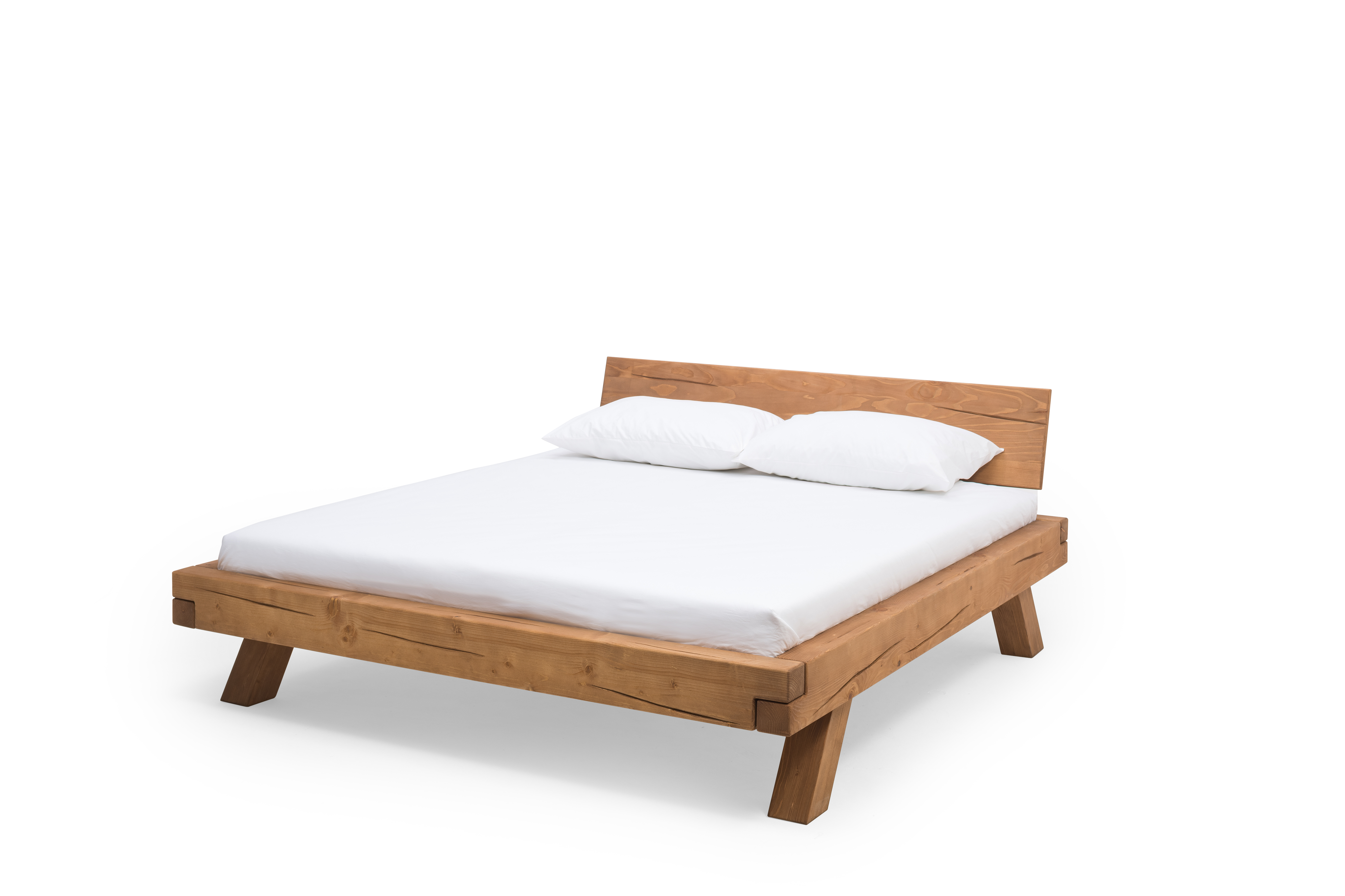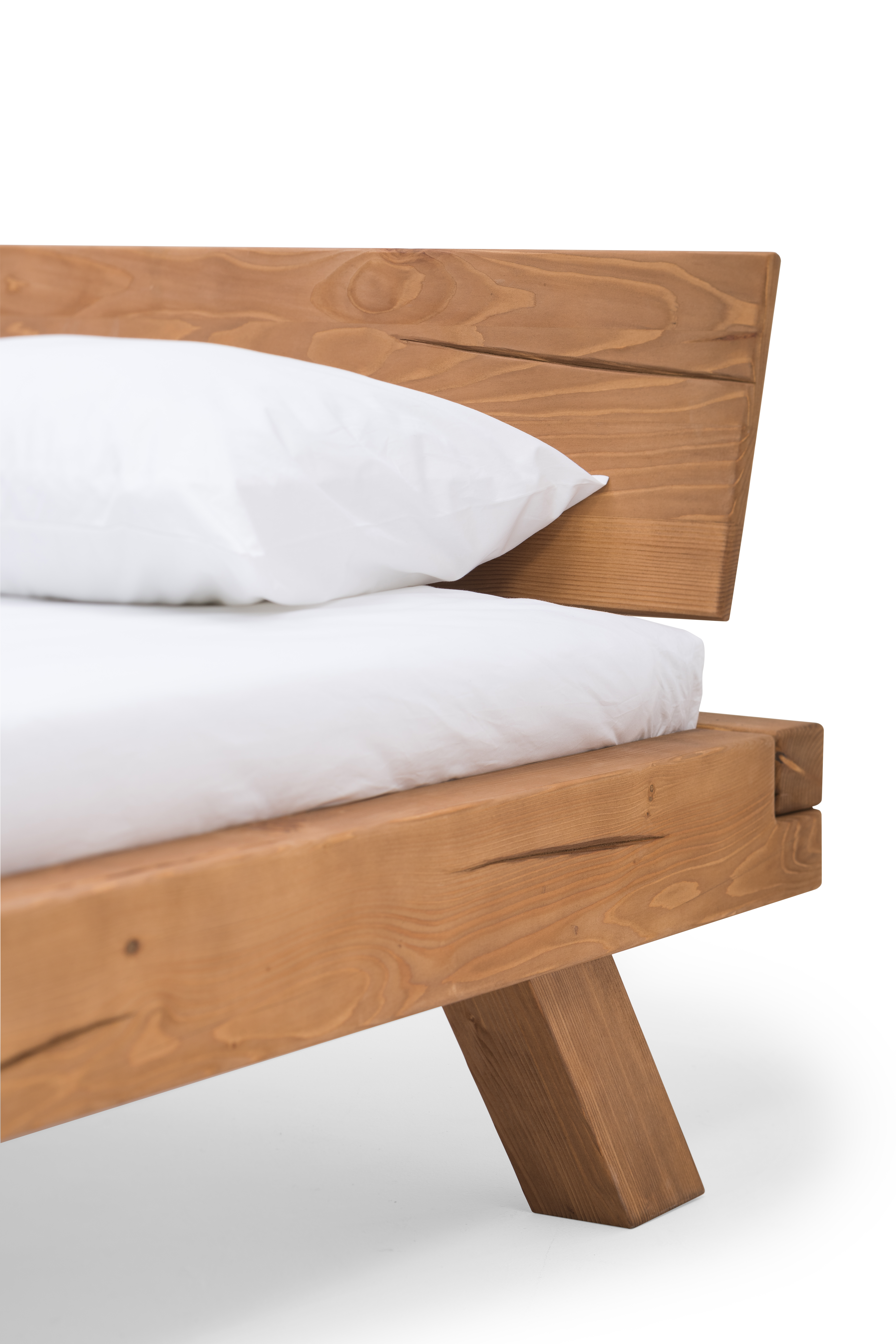 Ce lit rustique aspect poutres en bois massif de qualité supérieure créera une ambiance de confort authentique dans votre chambre à coucher. Le cadre de lit robuste en épicéa massif apporte un concentré de nature dans votre intérieur et assure stabilité et longévité. L’épicéa est très prisé pour les meubles en bois massif grâce à sa structure vigoureuse. Les fentes et les nœuds du bois font de ce lit une pièce unique fascinante au charme remarquable. Les assemblages d’angle caractéristiques attirent particulièrement l’attention sur ce lit en poutres. Ce type d'assemblage ne souligne pas seulement l'aspect solide du bois : il garantit également une grande robustesse. Les pieds en biais permettent de twister ce modèle pour lui donner un look moderne. L'aspect massif de ce lit en bois est allégé, en outre, grâce à la tête de lit confortablement inclinée. Ce lit solide allie, avec charme, style moderne et fabrication traditionnelle dans un meuble durable. Avec ce lit en poutres, c’est un meuble particulièrement facile d’entretien qui s’installe chez vous. Les surfaces huilées sont très faciles d'entretien, robustes et protégées de la poussière et des salissures. Il suffit d'essuyer les petites saletés à l’aide d’un chiffon humide.