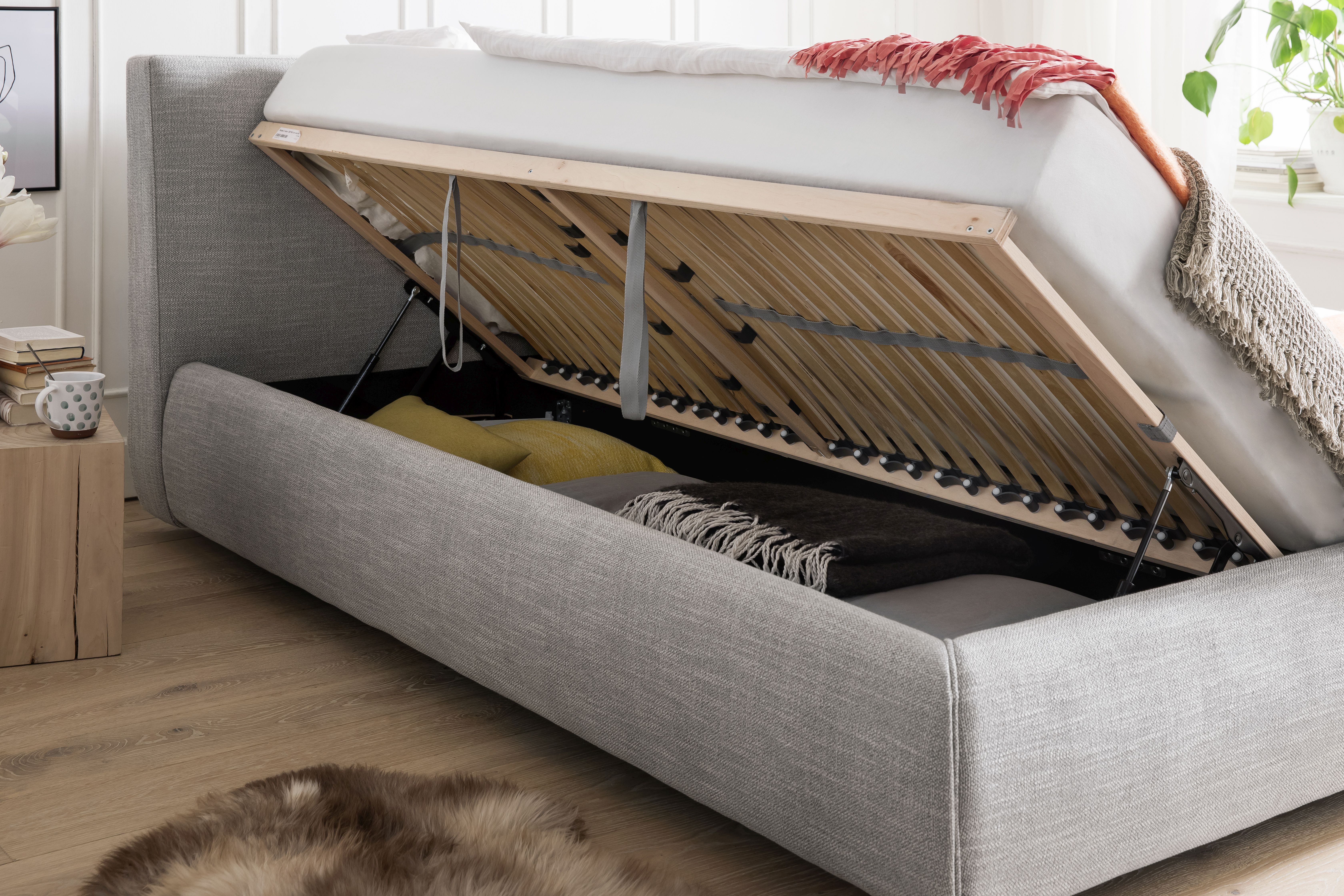 inclus : 2 coffres de lit avec multi-perforations et sommiers à lattes multiplis avec ouverture latérale