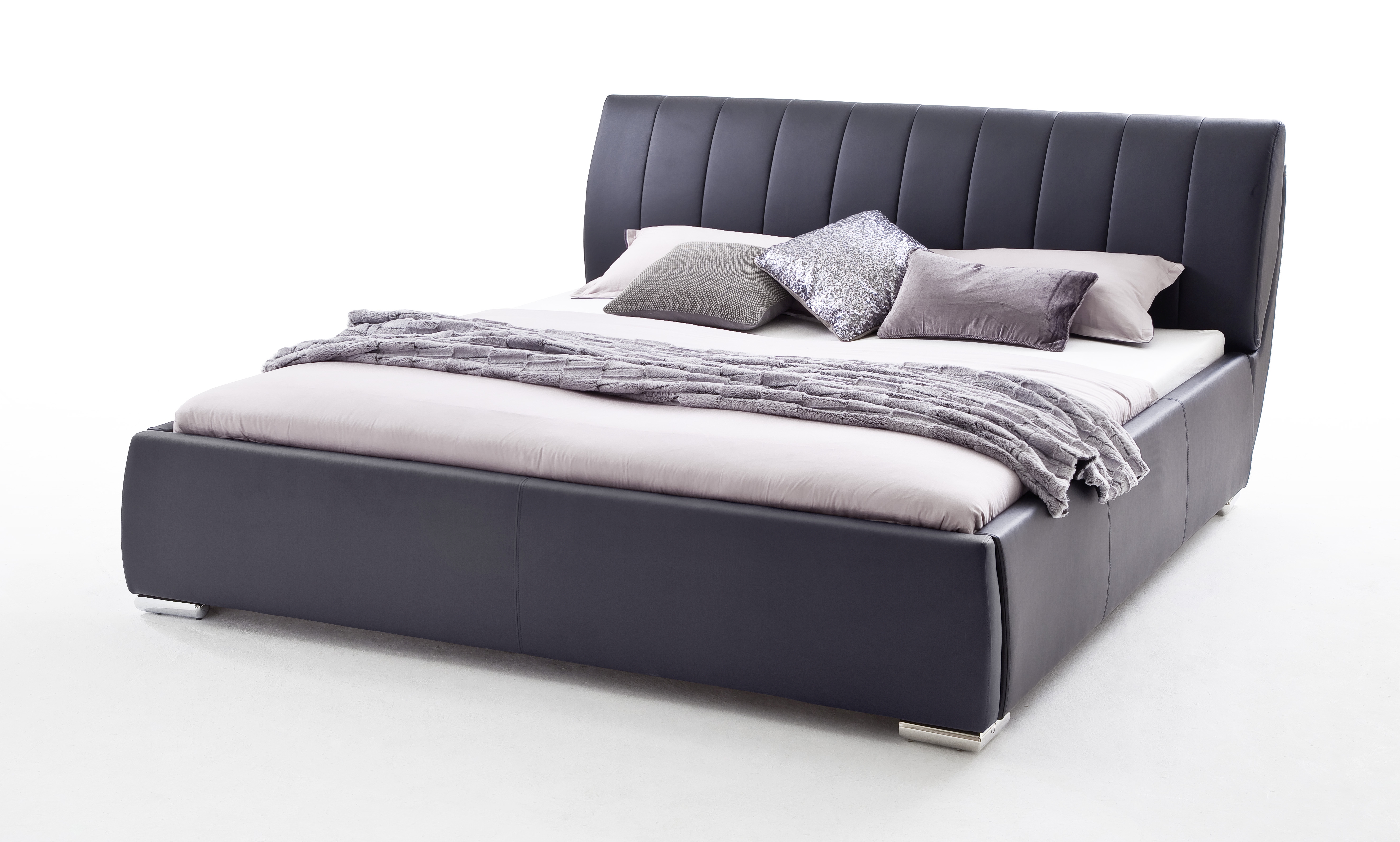 Lit rembourré ton noir avec revêtement en cuir synthétique : face avant 100% polyuréthane, dos : 50% coton, 50% polyester