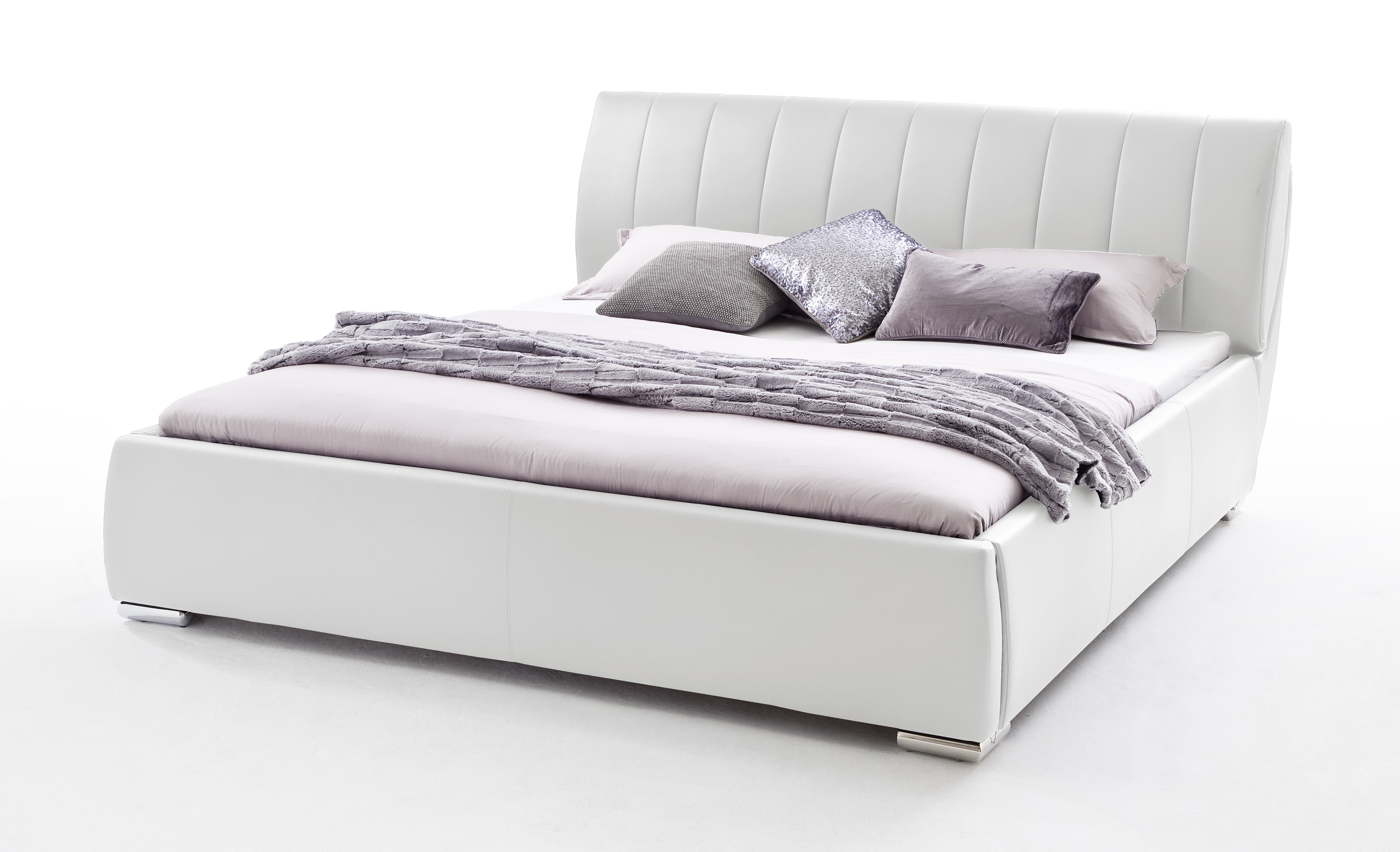 Lit rembourré ton blanc avec revêtement en cuir synthétique : face avant 100% polyuréthane, dos : 50% coton, 50% polyester