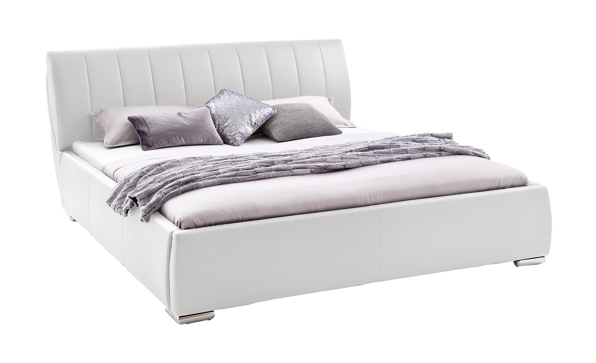 Lit rembourré ton blanc avec revêtement en cuir synthétique : face avant 100% polyuréthane, dos : 50% coton, 50% polyester