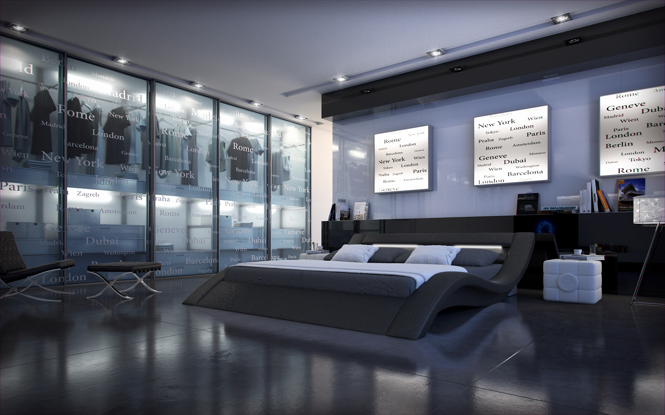 Ce lit rembourré moderne ton noir séduit par ses lignes ondulées. Le revêtement chic est en cuir synthétique facile d’entretien. Le lit est équipé d’une traverse centrale autoportante. Profitez de la possibilité d’utiliser deux petits matelas ou un grand matelas avec des degrés de fermeté différents. C’est un véritable atout pour les couples qui ont des habitudes de sommeil différentes. Les deux bandeaux LED intégrés à la tête de lit sont particulièrement raffinés. Ils créeront une ambiance agréable et chaleureuse dans votre chambre à coucher : la solution idéale pour les longues soirées télé ou lecture. Avec ce petit bijou de design, vous pourrez créer un espace de repos personnalisé dans votre chambre à coucher.
