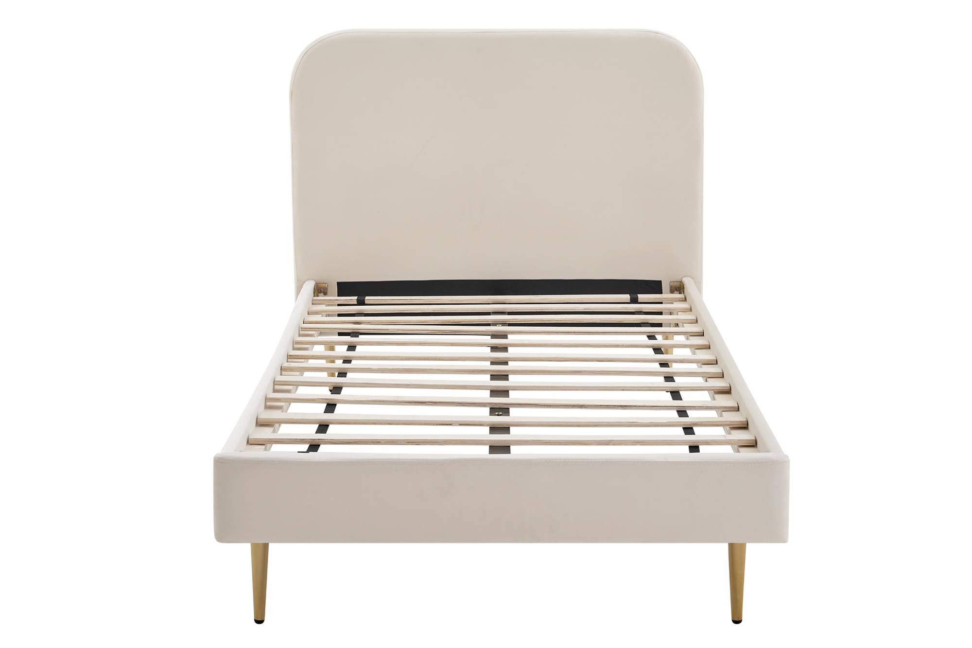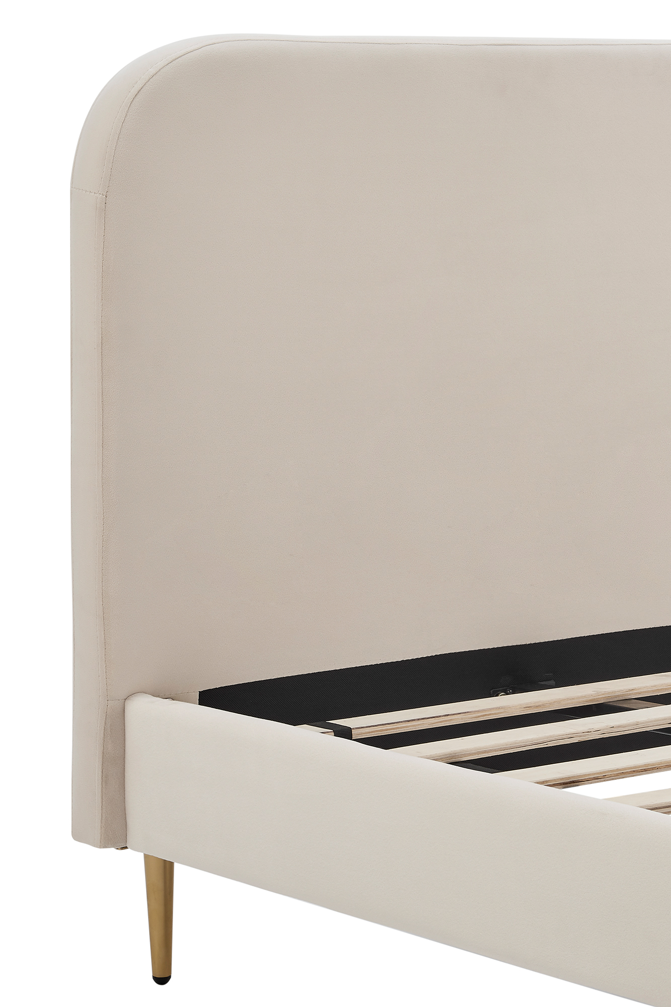 Ce lit rembourré doté d’un revêtement en velours de qualité supérieure confèrera un charme raffiné à votre espace de nuit. Le design aux lignes droites et les lignes épurées de ce lit en font le complément idéal dans de nombreux univers et styles d’aménagement. Les pieds chromés dorés contrastent avec la douceur du velours de la structure pour une touche tendance. Un sommier à lattes simple est inclus dans la livraison. L’espace libre de 15 cm sous le lit peut être utilisé de manière optimale comme espace de rangement, par exemple pour des boîtes plates contenant du linge de lit ou des vêtements de saison. Vous trouverez certainement votre bonheur parmi les trois variantes de couleurs et de tailles disponibles.